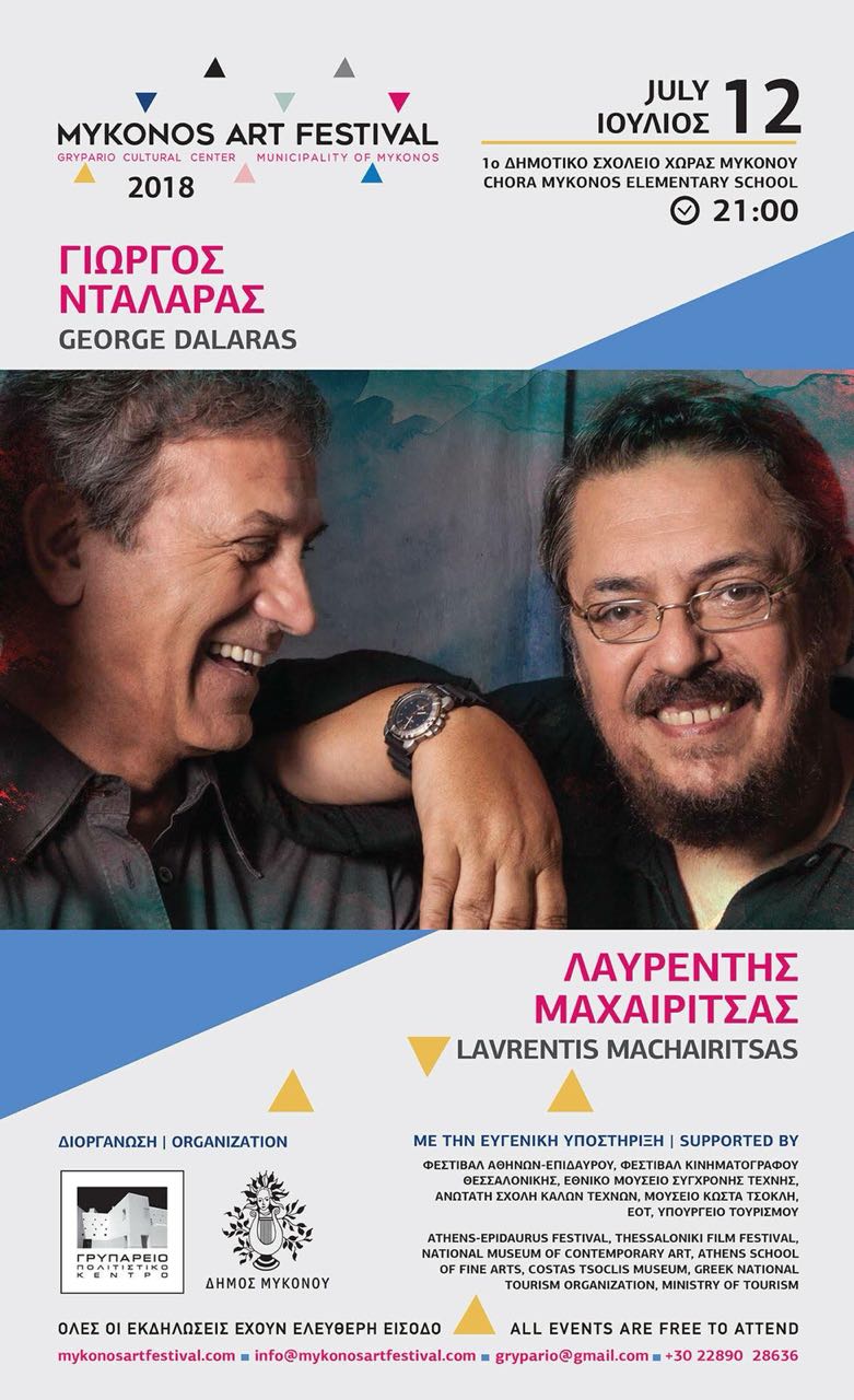 Η συναυλία των δυο κορυφαίων καλλιτεχνών εντάσσεται στα πλαίσια των προγραμματισμένων εκδηλώσεων του Mykonos Art Festival και συνδιοργανώνεται από το Δήμο Μυκόνου και το Γρυπάρειο Πολιτιστικό Κέντρο.