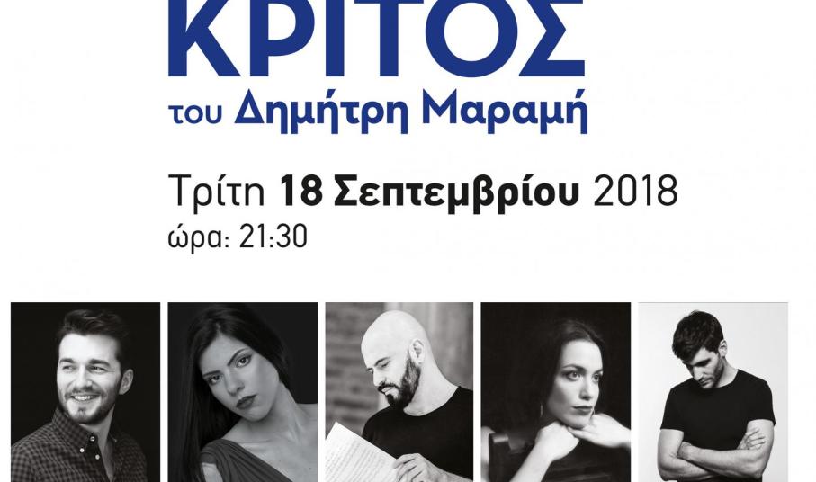 Στο πλαίσιο του πολιτιστικού προγράμματος του Δήμου Σύρου – Ερμούπολης, «Σύρος Πολιτισμός 2018», παρουσιάζεται «Ο Συναυλιακός Ερωτόκριτος» του Δημήτρη Μαραμή, βασισμένο στο κλασικό αριστούργημα της κρητικής αναγέννησης του Βιτσέντζου Κορνάρου, σε σκηνοθεσία Κωνσταντίνου Ρήγου, στο Θέατρο Απόλλων, την Τρίτη 18 Σεπτεμβρίου 2018 και ώρα 21:30.