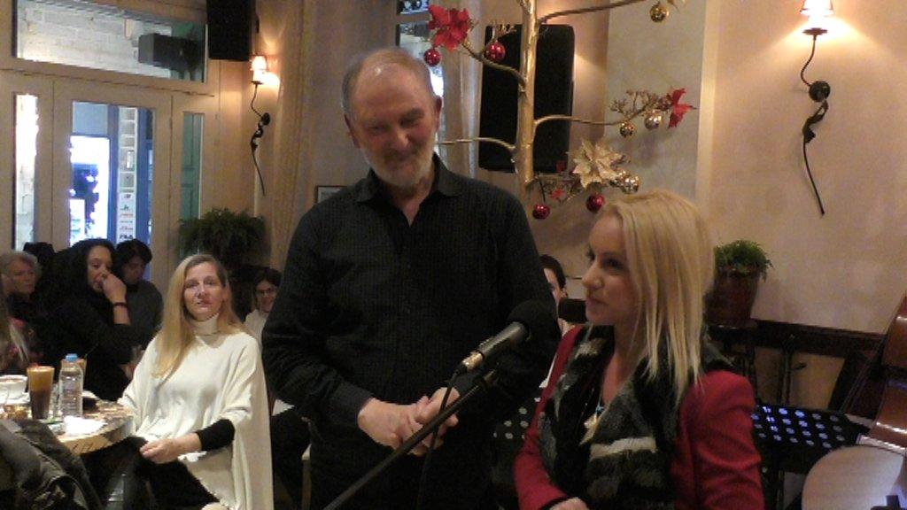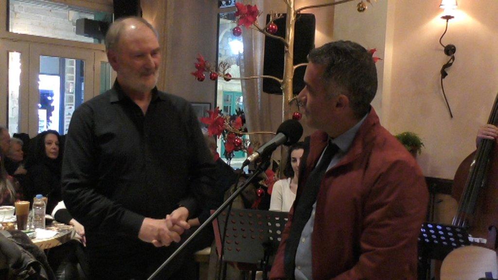 Στο ασφυκτικά γεμάτο ΜΕΓΑΡΟΝ ΚΑΦΕ της Σύρου παρουσίασε χθες το CD του με τραγούδια του πάνω στην ποίηση του Οικουμενικού Καβάφη... Το CD αυτό περιέχει 16 τραγούδια και 14 απαγγελίες. Η ατμόσφαιρα ήταν ζεστή και φιλική.