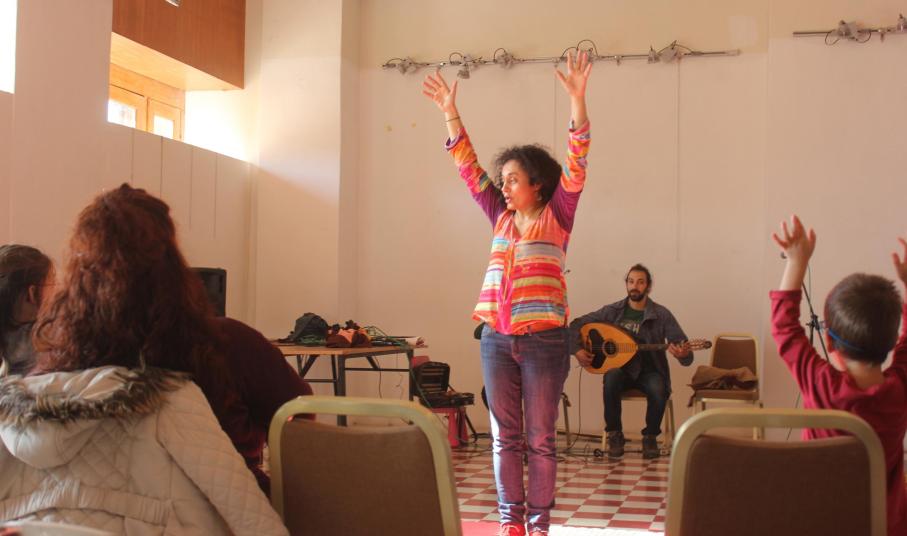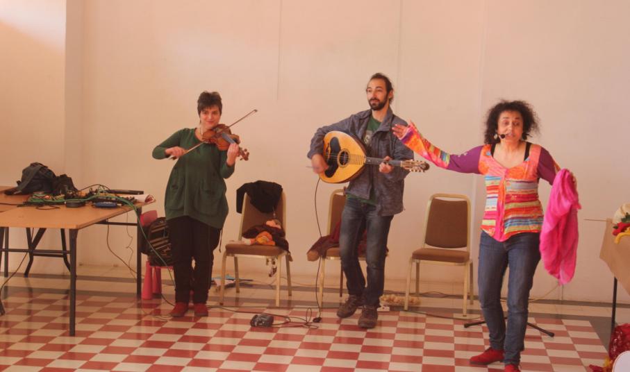 Μία διαδραστική μουσικοθεατρική παράσταση, βασισμένη στα έθιμα και τις μουσικές του τόπου μας παρουσίασαν στο παιδικό κοινό της Σύρου η γνωστή ερμηνεύτρια Καίτη Κουλλιά και οι συνεργάτες της Γεωργία Μαρίνη και Νίκος Βενετάκης.