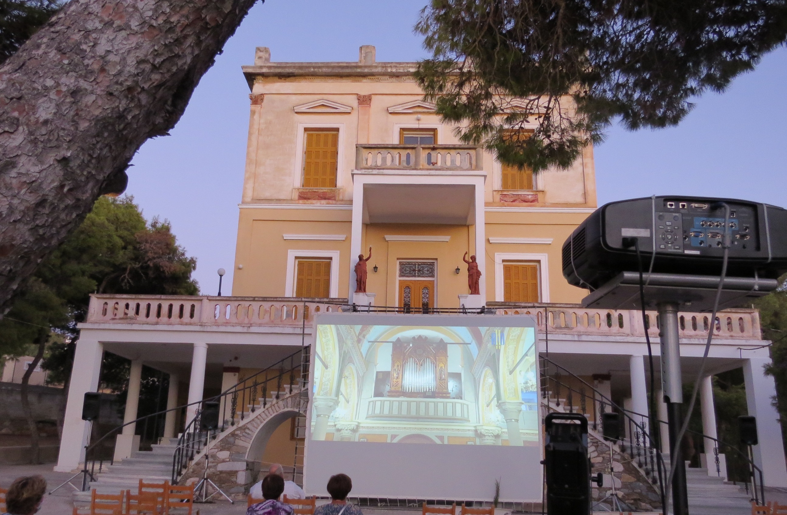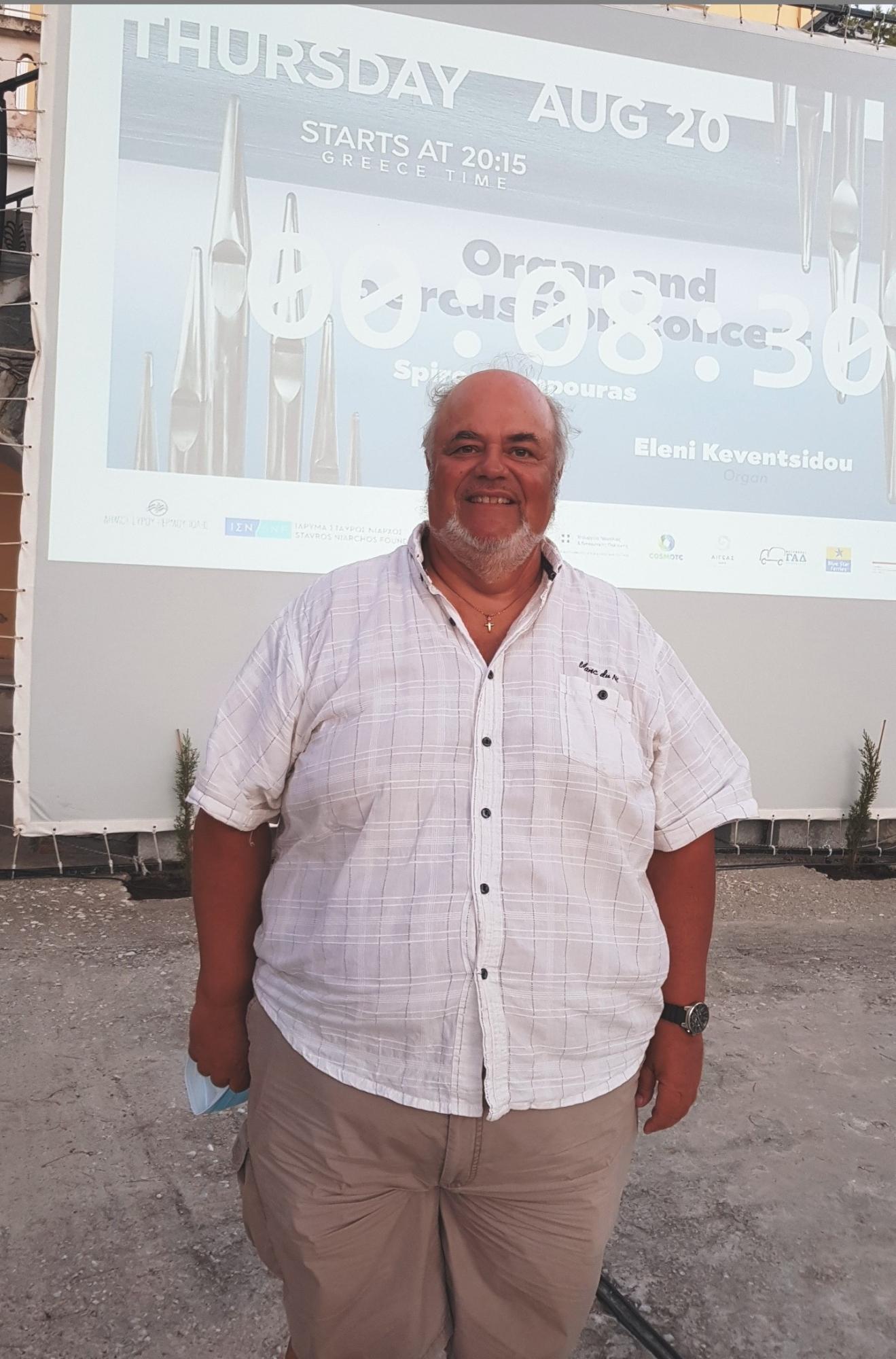 Παράλληλα, ιδιαίτερα τυχεροί υπήρξαν όσοι βρέθηκαν χθες στο Προαύλιο του Ποιμαντικού Κέντρου «ΑΓΙΟΣ ΠΑΥΛΟΣ», στην Ποσειδωνία, σε ένα μαγικό σκηνικό, με τους ήχους της φύσης και της μουσικής να ενώνονται, όπου πραγματοποιήθηκε - για περιορισμένο κοινό της Σύρου – ειδική προβολή σε γιγαντοοθόνη. Μεταξύ των παρευρισκόμενων ήταν ο συνθέτης Γιάννης Δροσίτης, έργο του οποίου παρουσιάστηκε στη συναυλία.