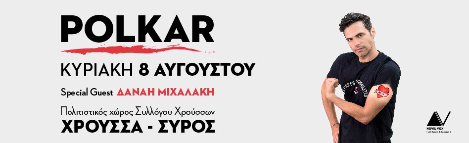 Έχοντας κερδίσει τον τίτλο “ροκ σταρ με το στανιό” και χαρακτηριστεί ως “η feelgood εμπειρία που δεν πρέπει να χάσεις”, οι Polkar έρχονται μετά από 1 χρόνο απουσίας να πετάξουν σουτιέν, βρακιά, τρομπέτες, γιουκαλίλι, μεταλλιζέ χαρτάκια και πανηγυρτζίδικες μελωδίες στη Σύρο με special guest τη Δανάη Μιχαλάκη!