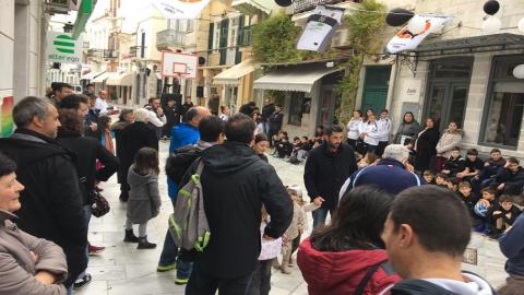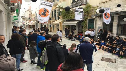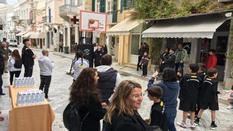 Για την σκέψη να γίνει η εκδήλωση στον πεζόδρομο, στο κέντρο της Ερμούπολης, ο Πέτρος Δεναξάς από τη διοίκηση του Ομίλου, εξήγησε ότι η ενέργεια έγινε «θέλοντας να φέρουμε το μπάσκετ μέσα στην πόλη».
