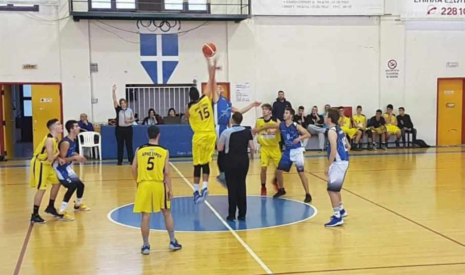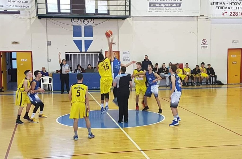 Οι έφηβοι του Άρη Σύρου πήραν τη νίκη απέναντι στον Α.Ο. Άνδρου, καθώς η ομάδα του Αντώνη Βαρθαλίτη επικράτησε στο κλειστό του αθλητικού κέντρου με 57-41. Οι Συριανοί πήραν μία σχετικά εύκολη νίκη με "όπλο" την εξαιρετική τους άμυνα, αλλά και τις σωστές επιλογές που έκαναν σε κρίσιμες επιθέσεις. Οι γηπεδούχοι πήραν το προβάδισμα από το πρώτο δεκάλεπτο και ουσιαστικά "κλείδωσαν" τη νίκη στο 3ο δεκάλεπτο όταν ανέβασαν την διαφορά σε διψήφιο νούμερο.