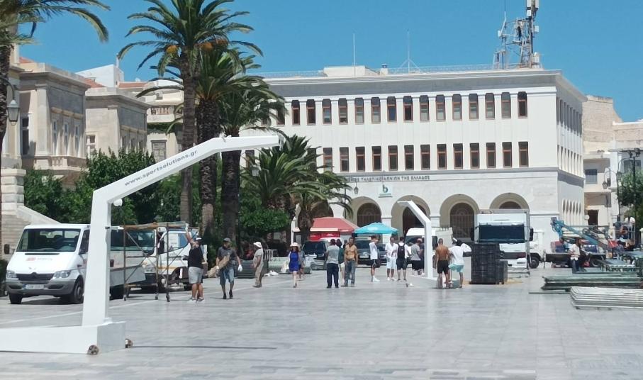 Η Σύρος επιστρέφει δυναμικά στις αθλητικές διοργανώσεις, καθώς από την Τετάρτη 6 Ιουλίου θα ξεκινήσουν οι ομάδες να αγωνίζονται στο πλαίσιο του Stoiximan AegeanBall Festival 2022, αφού σύμφωνα με το πρόγραμμα το απόγευμα της ίδιας ημέρας θα δοθούν τα πρώτα παιχνίδια. Οι εργασίες στην πλατεία Μιαούλη για την κατασκευή των γηπέδων μπάσκετ ξεκίνησαν από τη Δευτέρα το πρωί και σε λίγο χρονικό διάστημα τα πάντα αναμένεται να έχουν ολοκληρωθεί. Από εκεί και πέρα οι διοργανωτές έδωσαν παράταση για τις ομάδες που θέλουν να δηλώσουν συμμετοχή, καθώς θα μπορούν να το κάνουν μέχρι και την Τρίτη το μεσημέρι.