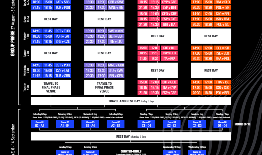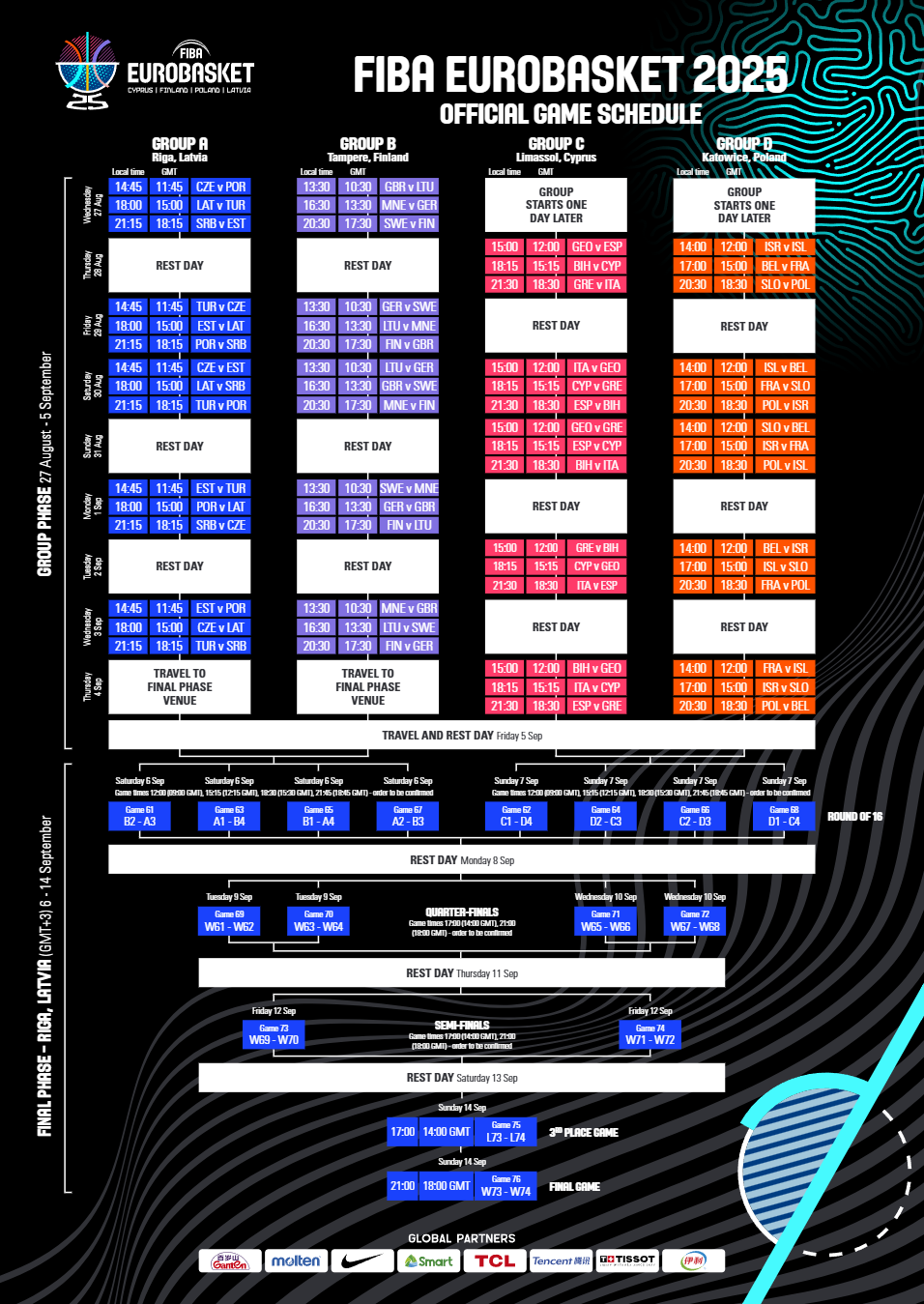 Το Ευρωμπάσκετ ξεκινά στις 27 Αυγούστου, με την Εθνική μας να αντιμετωπίζει την Ιταλία μία ημέρα μετά (28/8), στη Λεμεσό.