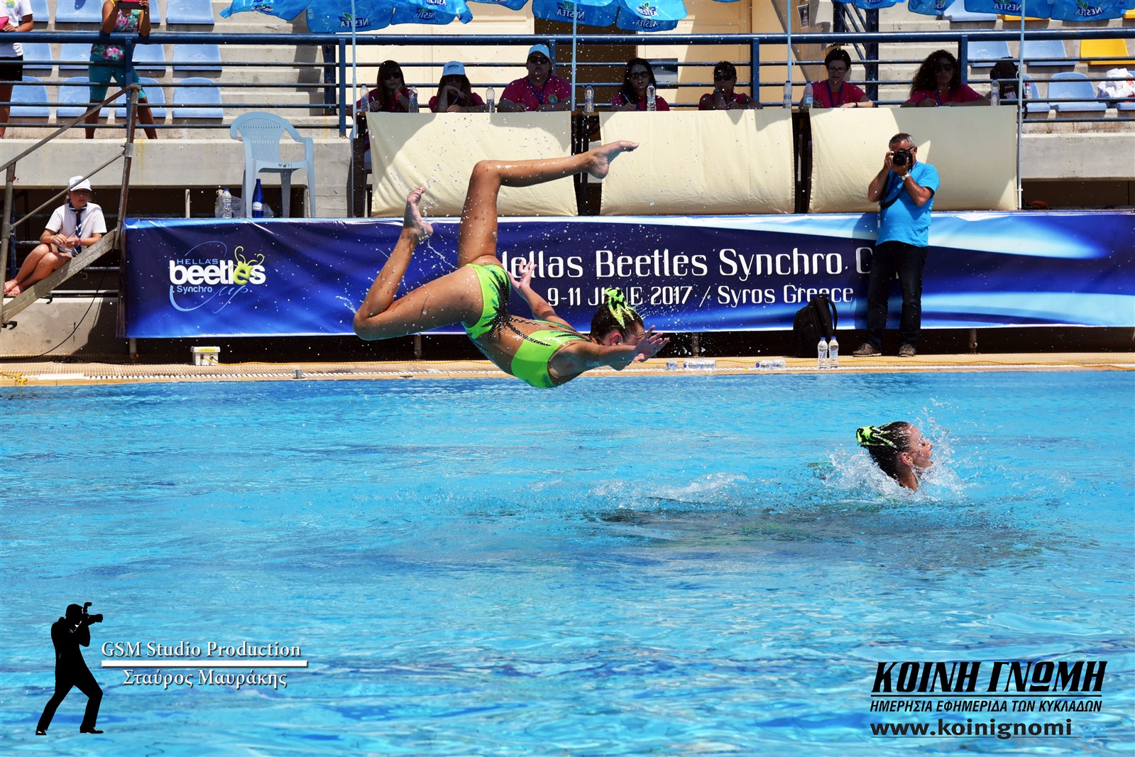 Με τον καλύτερο δυνατό τρόπο ολοκληρώθηκαν οι αγώνες της Διεθνούς διοργάνωσης της συγχρονισμένης κολύμβησης “Hellas Beetles Synchro Cup". Οι αγώνες ήταν σε συνδιοργάνωση του Δήμου Σύρου - Ερμούπολης, με την Κολυμβητική Ομοσπονδία Ελλάδας και τον Ναυτικό Όμιλο Μεταμόρφωσης. Η Σύρος, το τριήμερο των αγώνων είχε την ευκαιρία να γνωρίσει από κοντά ένα άθλημα ιδιαίτερο, εντυπωσιακό, αλλά ταυτόχρονα απαιτητικό. Τα κορίτσια που έλαβαν μέρος έδωσαν τον καλύτερό τους εαυτό, αφού πρόσφεραν πλούσιο θέαμα σε όλους όσους αποφάσισαν να βρεθούν τις μέρες των αγώνων στην εξέδρα του κολυμβητηρίου.