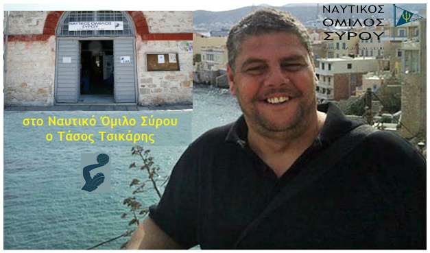 Ο Τάσος Τσικάρις μετά τις συζητήσεις που είχε με τη διοίκηση του Ναυτικού Ομίλου Σύρου, αναλαμβάνει τα τμήματα υποδομής της Υδατοσφαίρισης. Οι δύο πλευρές μόνο άγνωστες δεν ήταν μεταξύ τους αφού ο Έλληνας προπονητής του πόλο έχει περάσει και στο παρελθόν από την πρωτεύουσα των Κυκλάδων. Ναυτικός Όμιλος και Τάσος Τσικάρις είχαν κρατήσει επαφές και μετά από αρκετά χρόνια ο Έλληνας προπονητής επιστρέφει αρχικά για το επόμενο δίμηνο με την έναρξη της λειτουργίας του τμήματος της Υδατοσφαίρισης.
