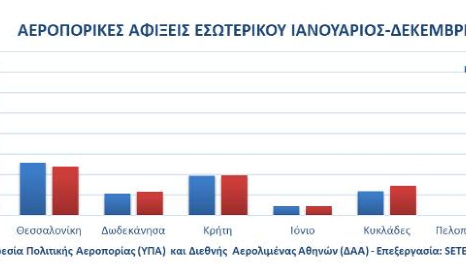 Τα συγκεντρωτικά στατιστικά στοιχεία του έτους που πέρασε, σε ότι αφορά σε τουριστικά μεγέθη, εξέδωσε το Ινστιτούτο του ΣΕΤΕ, με αυξημένες τις τιμές των αεροπορικών αφίξεων, του τουριστικού ισοζυγίου και τους δείκτες κύκλου εργασιών κλάδων σχετιζόμενων με τον τουρισμό.