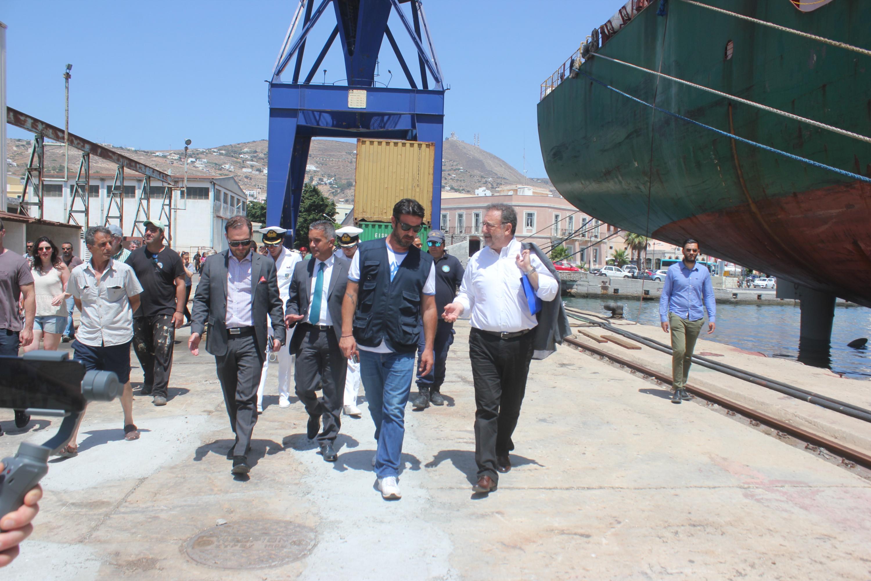 Θετικά μηνύματα μετέφερε στους εργαζόμενους του Νεωρίου ο Υφυπουργός Οικονομίας και Ανάπτυξης, Στέργιος Πιτσιόρλας, αναφορικά με την επόμενη μέρα του ναυπηγείου, ο οποίος μετέβη στη Σύρο σήμερα κι επισκέφθηκε τις εγκαταστάσεις, πλαισιωμένος τόσο από τα μέλη του ΔΣ του Εργοστασιακού Σωματείου, όσο και από τον νέο επενδυτή, Πάνο Ξενοκώστα.