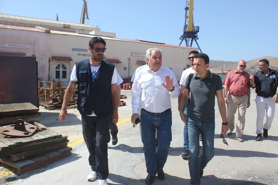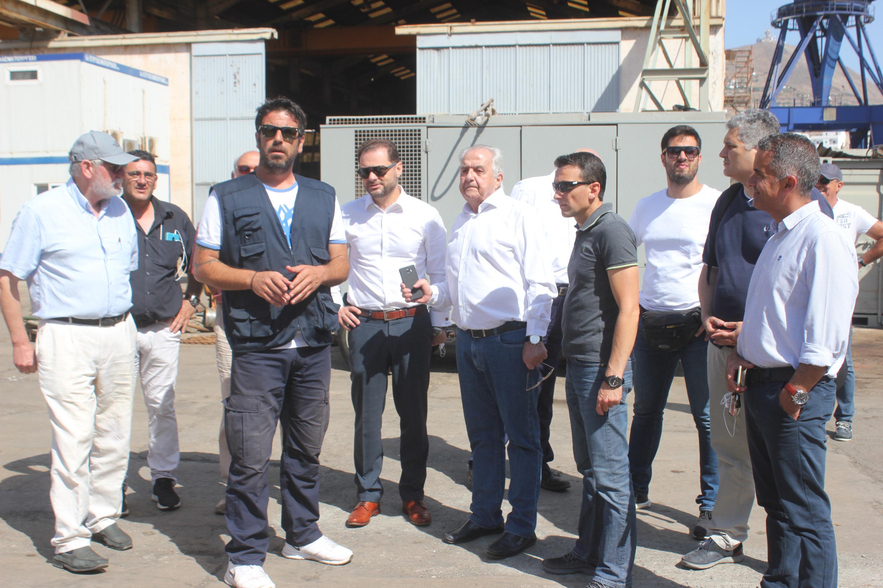 Τις εγκαταστάσεις των ναυπηγείων του Νεωρίου της Σύρου επισκέφθηκε σήμερα το πρωί ο Υπουργός Επικρατείας κ. Αλέκος Φλαμπουράρης.