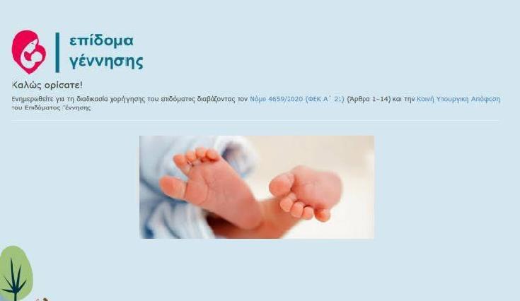 Ξεκινά σήμερα η λειτουργία της πλατφόρμας epidomagennisis.gr για τη χορήγηση του επιδόματος γέννησης παιδιού