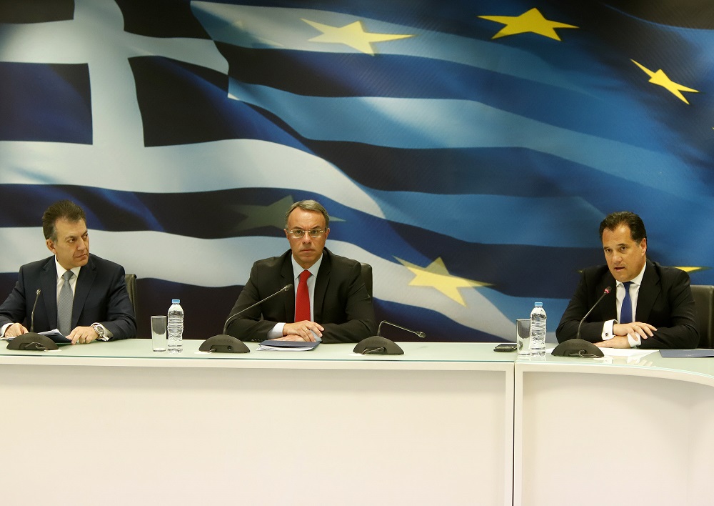 Οι  υπουργοί Οικονομικών, Χρήστος Σταϊκούρας, Εργασίας και Ασφαλιστικών Υποθέσεων, Γιάννης Βρούτσης και Ανάπτυξης και Επενδύσεων, Άδωνις Γεωργιάδης, ανακοίνωσαν το τρίτο πακέτο μέτρων της Ελληνικής κυβέρνησης.