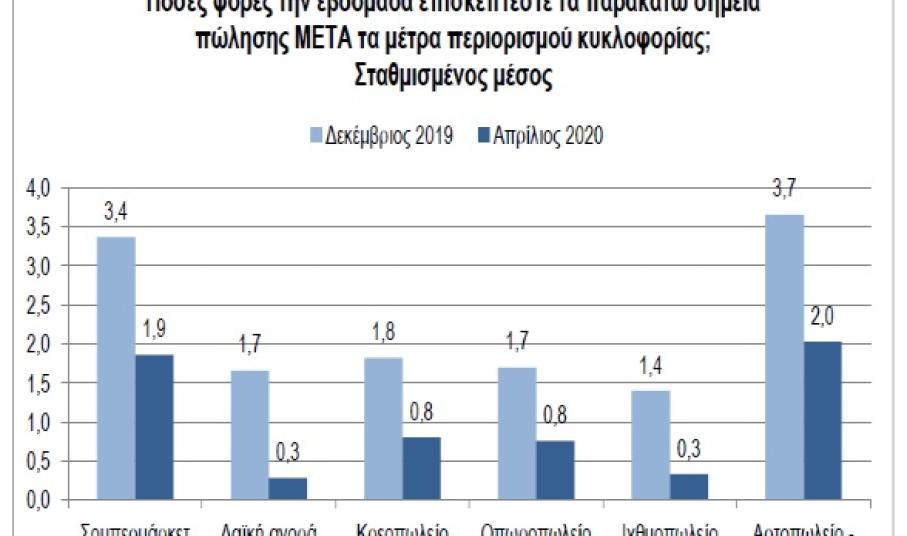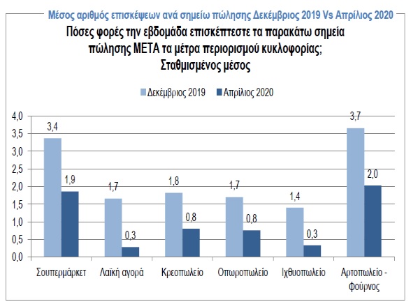 - 55% μειωμένος ο αριθμός επισκέψεων για αγορές τροφίμων σε σχέση με πριν