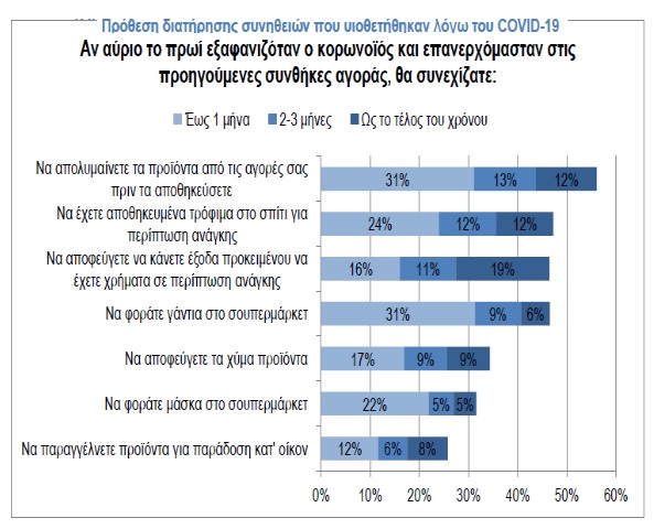 - 1 στους 3 καταναλωτές θα διατηρήσει τη συμπεριφορά του ακόμα και μετά την αποφυγή του κινδύνου της πανδημίας