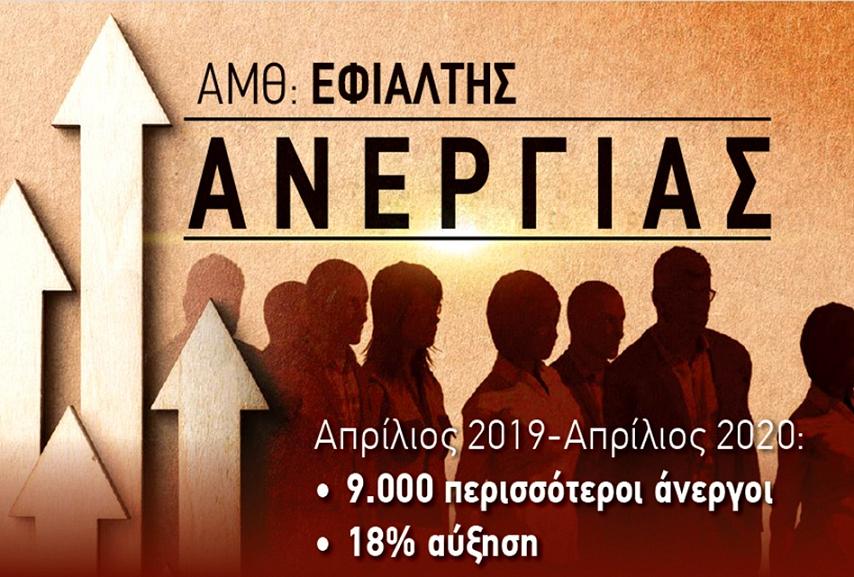 Σύμφωνα με τα επίσημα στοιχεία του Οργανισμού Απασχόλησης Εργατικού Δυναμικού (ΟΑΕΔ), το σύνολο των εγγεγραμμένων ανέργων, με κριτήριο την αναζήτηση εργασίας (αναζητούντων εργασία), για τον μήνα Απρίλιο 2020, ανήλθε σε 1.124.486 άτομα. Σε σχέση με τον Μάρτιο 2020 παρατηρείται αύξηση 4,72%, ενώ σε απόλυτο αριθμό ανέργων μεταφράζεται σε 53.367 ακόμη ανέργους. Εάν συγκρίνουμε τους μήνες Απρίλιο 2020 και Απρίλιο 2019, τα πράγματα είναι ακόμη χειρότερα, καθώς οι εγγεγραμμένοι άνεργοι πριν από έναν χρόνο ήταν 973.487 συνολικά (δηλαδή 211.526 λιγότεροι ή 21,73% μικρότερη ανεργία).