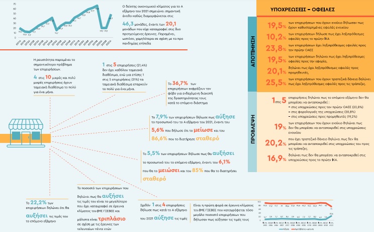 Η εξέλιξη αυτή υποδηλώνει πως τα μέτρα στήριξης της ελληνικής οικονομίας σε συνδυασμό με την σταδιακή άρση των περιοριστικών μέτρων στην οικονομική δραστηριότητα, που κατέστη εφικτή κυρίως από την πρόοδο στους εμβολιασμούς, έχει επιτρέψει στις μικρές και πολύ μικρές επιχειρήσεις να παραμείνουν «ζωντανές».