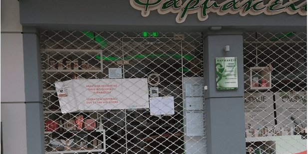 Σύμφωνα με πληροφορίες μέχρι στιγμής σε αρκετά φαρμακεία στης πόλης μας έχει μπει λουκέτο δύο ή τεσσάρων ημερών ανάλογα με την παράβαση και πρόστιμο ύψους 500 ευρώ.