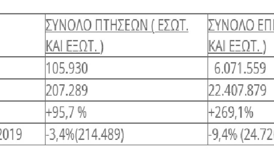 Η σύγκριση με το αντίστοιχο πρώτο εξάμηνο του 2019 όπου δεν υπήρχαν περιορισμοί λόγω της πανδημίας
