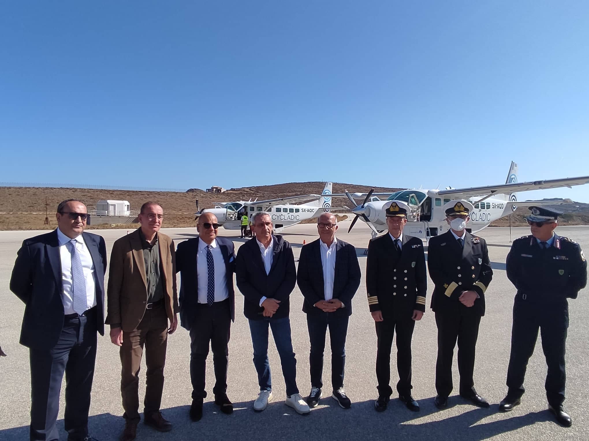 Τα δύο μικρά αλλά υπερπολυτελή Cessna Grand Caravan EX προσγειώθηκαν χθες λίγο πριν τις δύο το μεσημέρι στη Σύρο, με εκπροσώπους των τοπικών Αρχών, της Περιφέρειας και του Δήμου, όπως και της Αστυνομίας, του Λιμενικού αλλά και του Επιμελητηρίου, όπως και των δύο Εκκλησιών, να καλωσορίζουν τον κ. Λυκιαρδόπουλο, τους συνεργάτες του από την IFLY και να συγχαίρουν τον ίδιο για την επενδυτική πρωτοβουλία του.