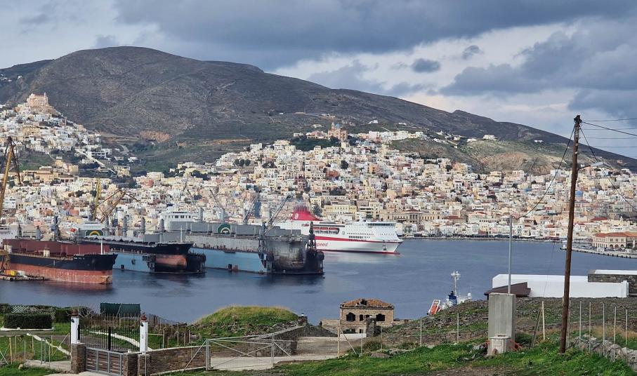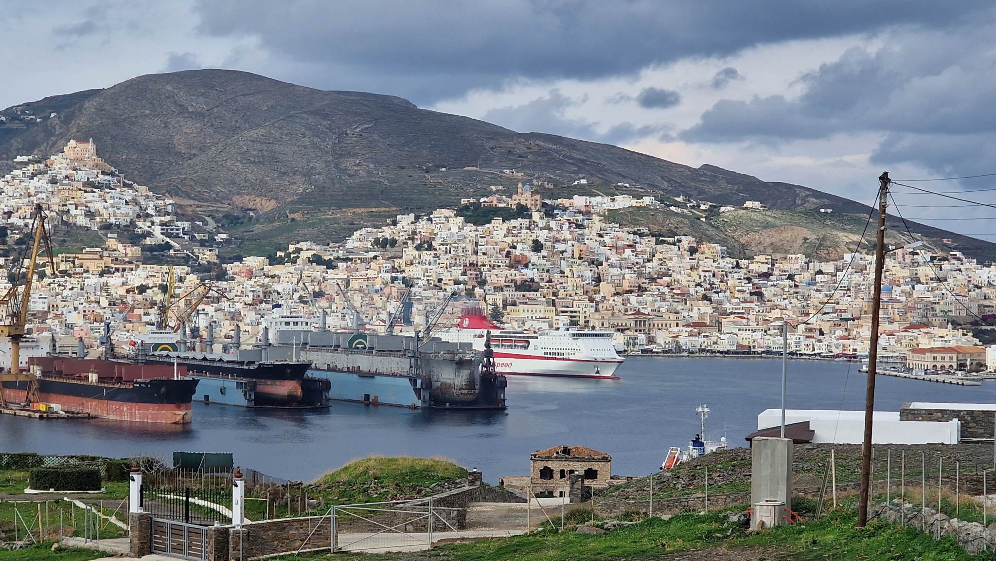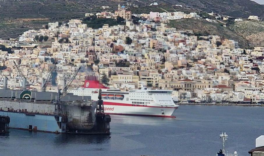 Στο λιμάνι της Ερμούπολης έφτασε το μεσημέρι του Σαββάτου το πλοίο Festos Palace της εταιρείας Minoan Lines, προκειμένου να δεξαμενισθεί στο ναυπηγείο του Νεωρίου.