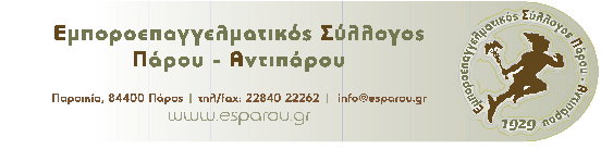 Το διοικητικό συμβούλιο του Εμποροεπαγγελματικού συλλόγου Πάρου –Αντιπάρου, ευχαριστεί τα μέλη του, που με τη στάση τους τάχτηκαν υπέρ της διατήρησης των κεκτημένων.