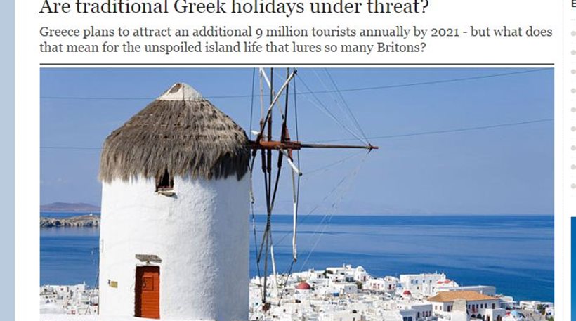 Η γνωστή βρετανική εφημερίδα Telegraph, δημοσίευσε σε άρθρο στην διαδικτυακή της έκδοση , ένα αφιέρωμα στον ελληνικό τουρισμό τονίζοντας τα ποσοστά ρεκόρ που κατέγραψε η χώρα τα τελευταία χρόνια και τα οποία αποτέλεσαν σημαντική αιτία αποκατάστασης της φήμης της Ελλάδας αλλά και αφορμή για αναβάθμιση των επιχειρησιακών και λειτουργικών της πρακτικών. Την ίδια στιγμή ωστόσο, ο τίτλος του άρθρου, «Βρίσκονται υπό απειλή οι παραδοσιακές ελληνικές διακοπές;», γεννά ερωτήματα και ανησυχίες αναφορικά με τις διαστάσεις που προβλέπεται να λάβει η τουριστική κίνηση τα επόμενα έτη και κατά πόσο αυτή η ραγδαία αύξηση των τουριστών- επισκεπτών, ειδικότερα στα νησιά, δύναται να πλήξει τόσο τις παραδοσιακές κοινωνίες και συνήθειες, όσο τις παραδοσιακές διακοπές στην Ελλάδα.