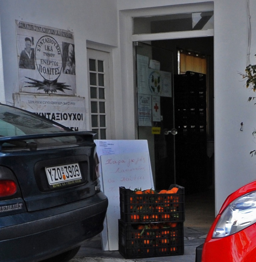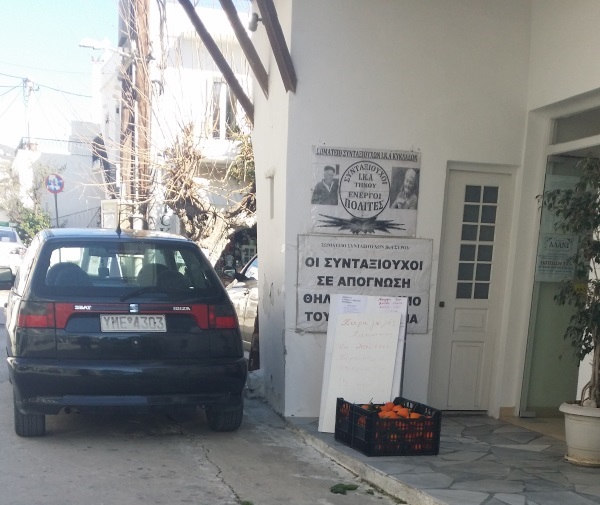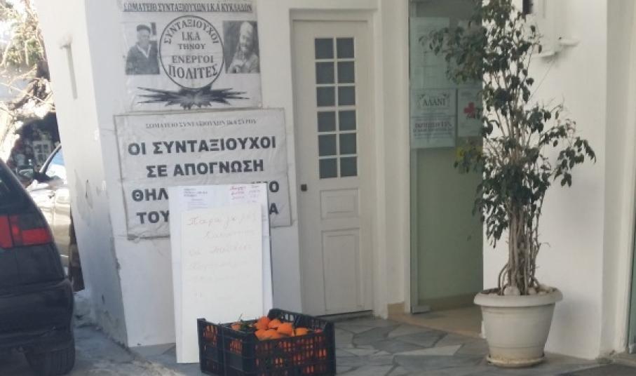 Από την πλευρά του, ο κ. Τσιμέκης κρίνει πως η πώληση οπωροκηπευτικών προϊόντων είναι ένας ακόμη τρόπος του Σωματείου Συνταξιούχων Ι.Κ.Α. Κυκλάδων να διατηρήσει τα μέλη του. Ωστόσο, διευκρινίζει ότι σε καμία περίπτωση δεν κατακρίνει την πρόθεση του Σωματείου για κοινωνική προσφορά. “Κι εμείς τα Χριστούγεννα διανείμαμε μέσω των Εκκλησιών προϊόντα σε φτωχούς, όμως αυτό το πράγμα γίνεται κατά συρροή και μας ζημιώνει”, σημειώνει. Παράλληλα, ενημερώνει πως το Σωματείο προμηθεύεται τα προϊόντα από παραγωγό εκτός Κυκλάδων, την ίδια στιγμή που 150 μέτρα πιο κάτω από το γραφείο του υπάρχει μανάβικο. “Εμείς έχουμε διανείμει σε συνταξιούχους, πολύτεκνους, τρίτεκνους και ΑΜΕΑ ειδική κάρτα με την οποία έχουν έκπτωση 10-15% σε όποιο κατάστημα επιλέξουν. Σε αυτή την προσπάθεια συμμετέχει το 99% των επιχειρήσεων. Συνεπώς, υπάρχει κοινωνική πολιτική απέναντί τους. Από κει και πέρα, παρατηρείται μία αλαζονεία από πλευράς του Σωματείου Συνταξιούχων ΙΚΑ Κυκλάδων, το οποίο είναι το μοναδικό που καταφεύγει σε τέτοιου είδους ενέργειες”, καταλήγει.