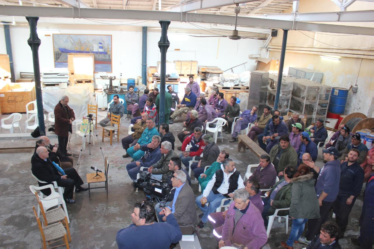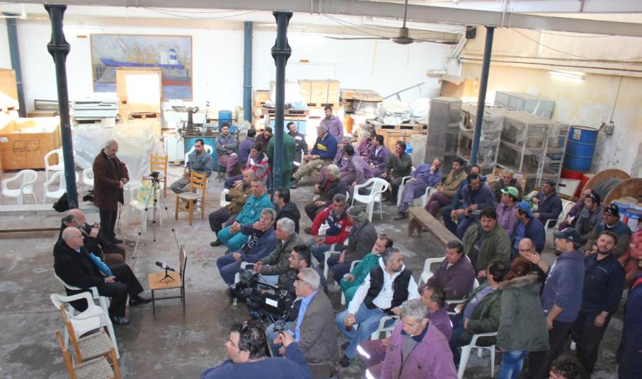 Με τη άφιξη των δύο βουλευτών στο ναυπηγείο υπήρξε συνάντηση τους με τους εργαζόμενους, οι οποίοι τους εξέθεσαν τους προβληματισμούς τους για την συνεχιζόμενη οικονομική τους ανασφάλεια, απαιτώντας, στην όποια πολιτική τακτοποίηση του προβλήματος που αντιμετωπίζει η επιχείρηση, πρώτιστα να εξασφαλιστεί η πληρωμή τους.