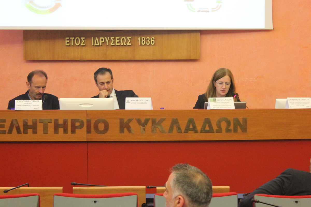 Ενημερωτική εκδήλωση με θέμα “Πράσινη Επιχειρηματικότητα και Ευκαιρίες για τις Μικρομεσαίες Επιχειρήσεις” διοργανώθηκε στη Σύρο από το Επιμελητήριο Κυκλάδων και την Εταιρεία Ανάπτυξης & Προόδου Κυκλάδων, στο πλαίσιο υλοποίησης του Ευρωπαϊκού Προγράμματος Διακρατικής Συνεργασίας “FIREMED”.