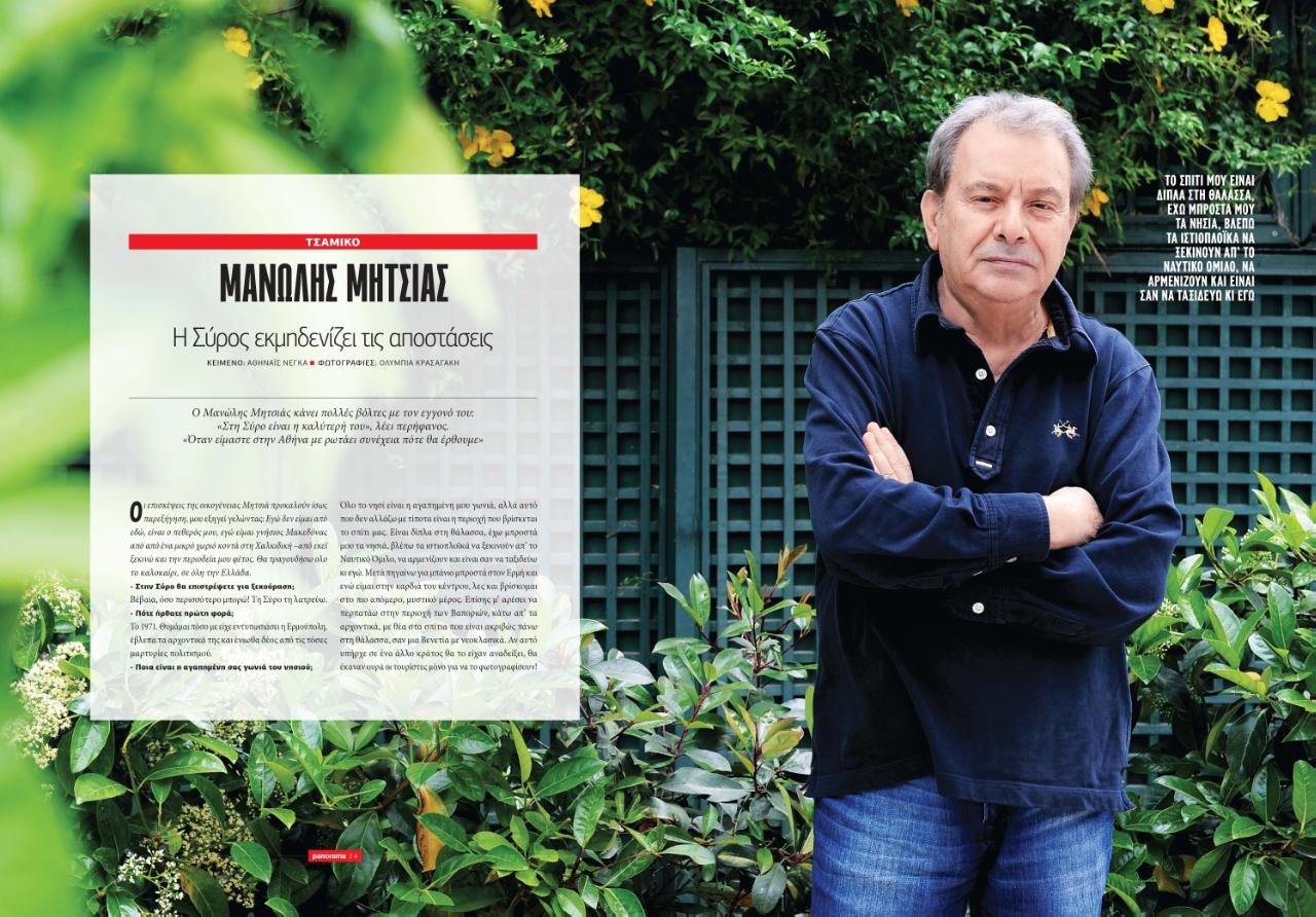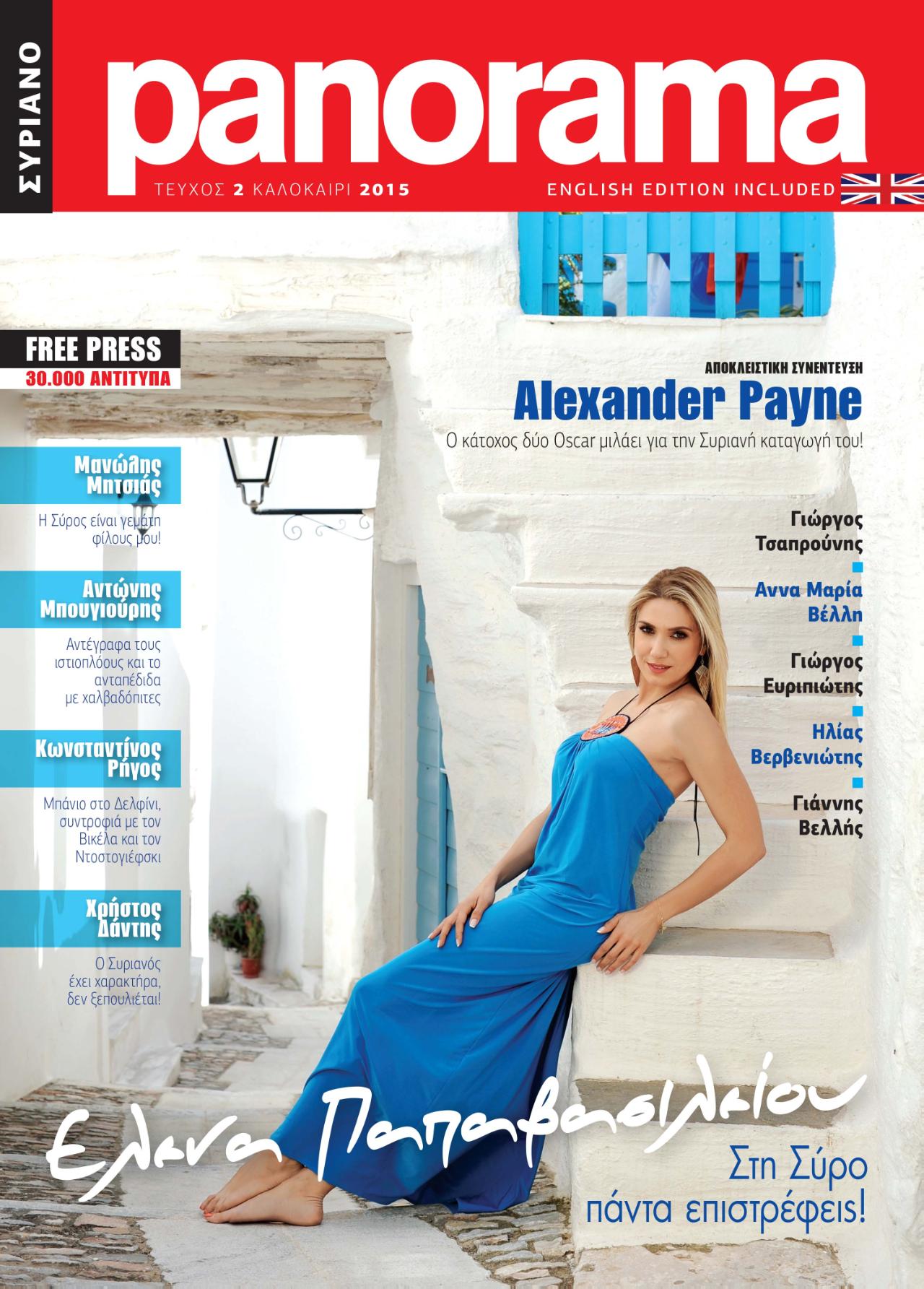 Την αγάπη τους για τη Σύρο, αλλά και τους λόγους που την ξεχωρίζουν από άλλα νησιά, αυτοχαρακτηριζόμενα και «κοσμικά» εξομολογούνται ο αρχιτέκτονας Γιώργος Ευριπιώτης, ο –παντρεμένος με Συριανή- Χρήστος Δάντης, ο σκηνοθέτης Κώνσταντίνος Ρήγος και φυσικά η εντυπωσιακή Έλενα Παπαβασιλείου, η οποία κοσμεί και το εξώφυλλο του περιοδικού.