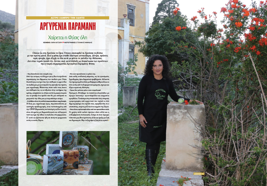 Στη φιλοσοφία που κρύβεται πίσω από την Παρασκευή των επιτυχημένων κηραλοιφών αλλά και των υπόλοιπων φυσικών προϊόντων της τα οποία διατίθενται σε φαρμακεία εντός αι εκτός Σύρου, αναφέρεται η νεαρή επιχειρηματίας Αργυρένια Παραμάνη, ενώ για την τέχνη της αεροφωτογραφίας που συναρπάσει μικρούς και μεγάλους, μιλά ο Γιώργος Στεφάνου.