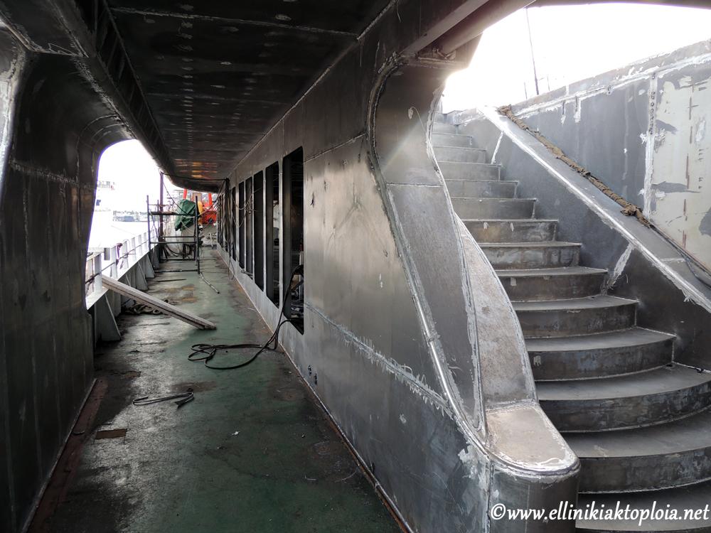 Όπως αναφέρεται στο σχετικό άρθρο, «την ευκαιρία να πραγματοποιήσει μια πρώτη γνωριμία με το εσωτερικό του SUPERFERRY είχε σήμερα η παρέα του www.ellinikiaktoploia.net, μπαίνοντας στα άδυτα του πλοίου. Όπως ήδη σας έχουμε ενημερώσει, εξωτερικά έχουν ολοκληρωθεί σε μεγάλο βαθμό οι εργασίες που έπρεπε να γίνουν, απομένοντας να βαφτεί το πλοίο στο γνώριμο μπλε που είναι βαμμένο και το SUPERFERRY II. Εσωτερικά στο πλοίο έχουν προχωρήσει οι χώροι του πληρώματος και οι καμπίνες επιβατών ενώ απομένει η αποπεράτωση των εσωτερικών κοινόχρηστων χώρων.