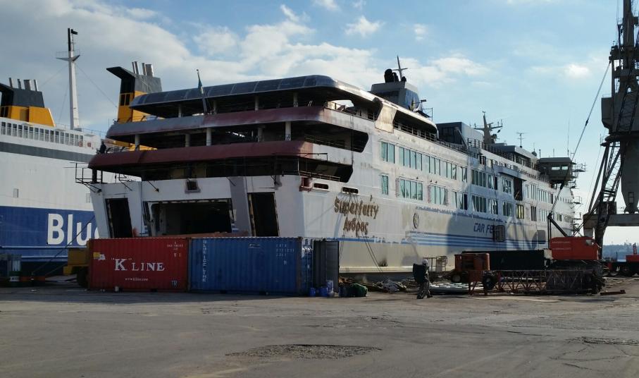 Το φως της δημοσιότητας είδαν εικόνες από τα τελικά στάδια της μετασκευής του Ε/Γ-Ο/Γ «SUPERFERRY ΑΝΔΡΟΣ», το οποίο αναμένεται να είναι έτοιμο και να ενταχθεί στα ακτοπλοϊκά δρομολόγια της εταιρείας Golden Star Ferries, εντός του 2016.