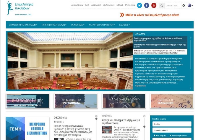Κατόπιν μίας εξαετούς προσπάθειας και συστηματικής δουλειάς, το Επιμελητήριο Κυκλάδων, μέσω της υλοποίησης του έργου “Σύγχρονες Ψηφιακές εφαρμογές ανάδειξης της Επιχειρηματικότητας του Ν. Κυκλάδων με χρήση Web 2.0 / Social Media / Mobile Technologies / Virtual Trade Shows & ψηφιακή υποστήριξη τοπικών επιχειρήσεων για την ενίσχυση της ανταγωνιστικότητάς τους” ολοκλήρωσε στο μέγιστο δυνατό βαθμό τον εκσυγχρονισμό των ψηφιακών εργαλείων του καθώς και των υποδομών του, έχοντας αποκτήσει το ολοκαίνουργιο ανανεωμένο πρόσωπό του.
