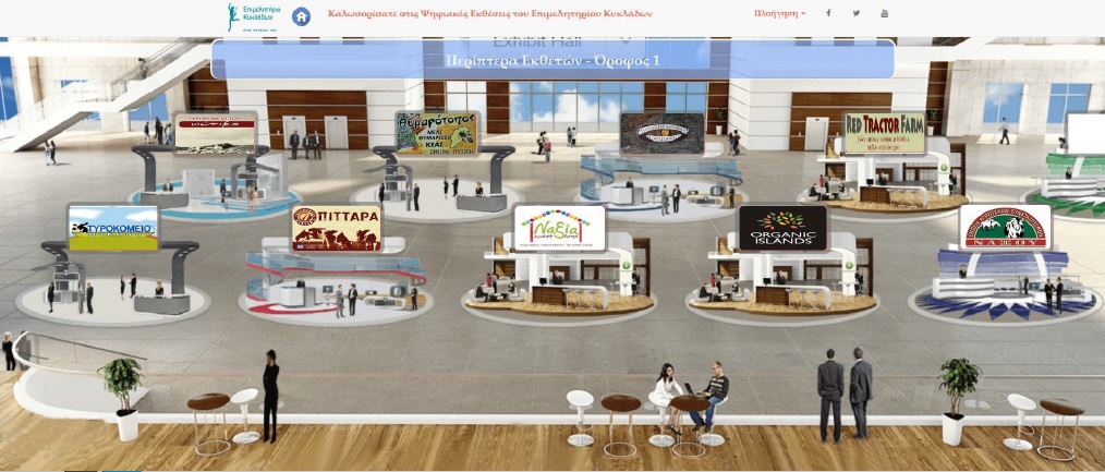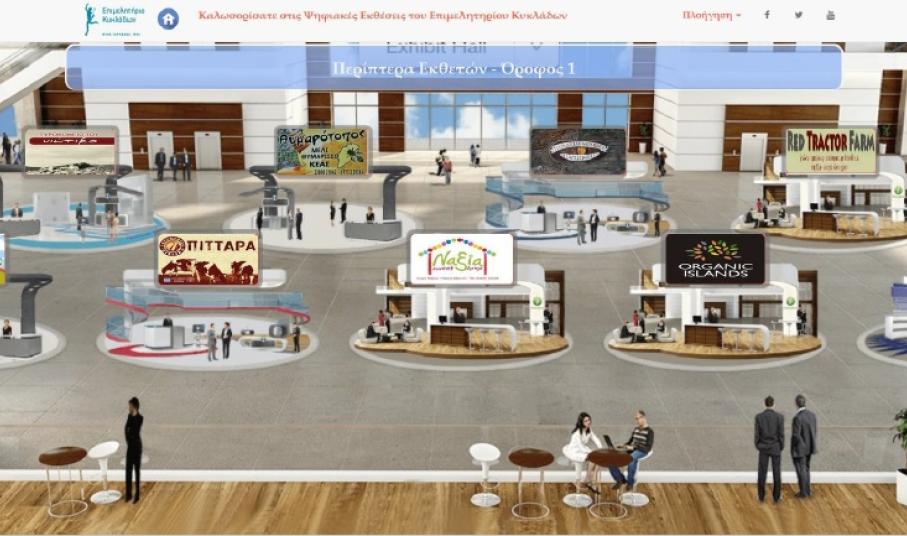 Ιδιαιτέρως εντυπωσιακή παρουσιάζεται η πλατφόρμα ψηφιακών εκθέσεων (http://vex.e-Kyklades.gr) η οποία προβάλλει με μοναδικό τρόπο τις επιχειρήσεις των Κυκλάδων. Μία επίσκεψη των χρηστών είναι αρκετή για να διαπιστωθεί το μέγεθος της δουλειάς που έχει γίνει, αλλά και να γνωρίσει κανείς τα ψηφιακά περίπτερα της κάθε επιχείρησης. Όπως αναφέρθηκε στην παρουσίαση από τους συνεργάτες του προέδρου, “αυτή τη στιγμή είναι online2 πιλοτικές εκθέσεις: