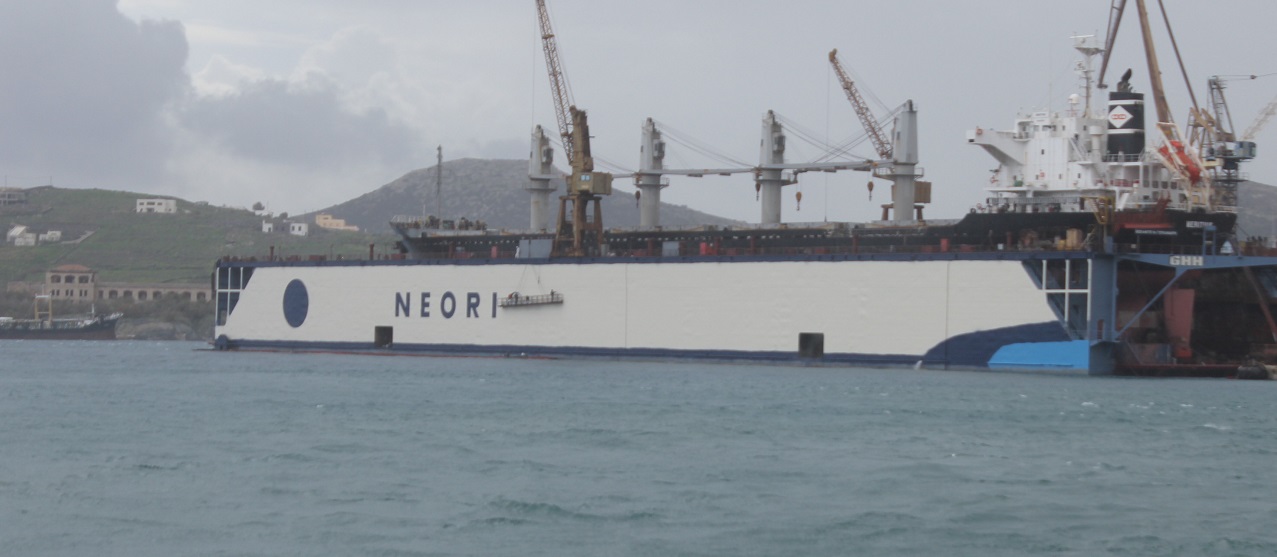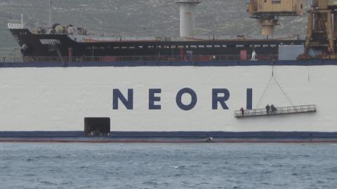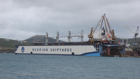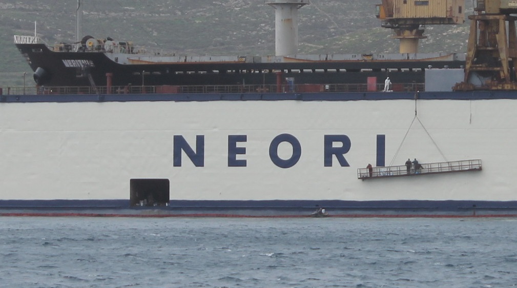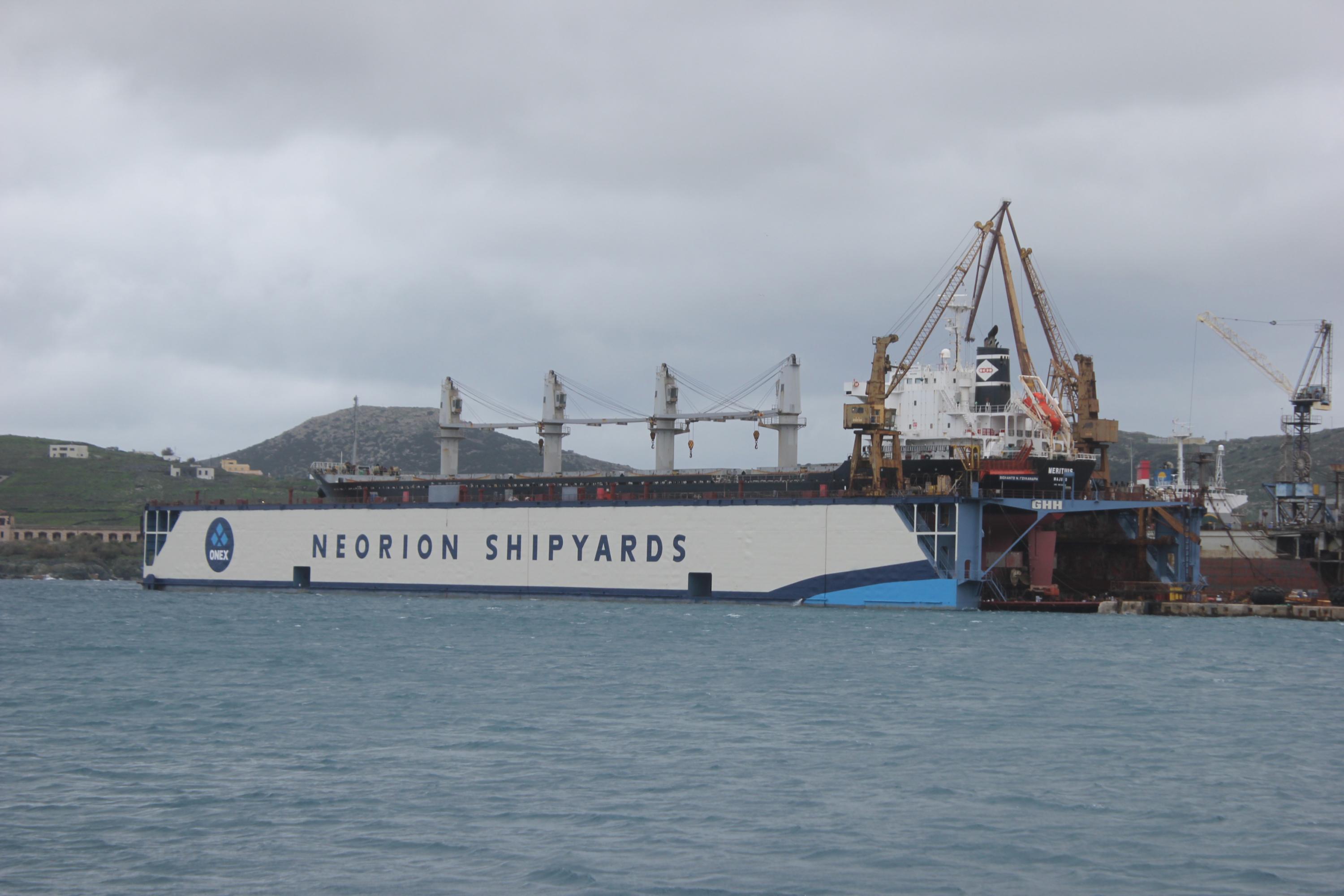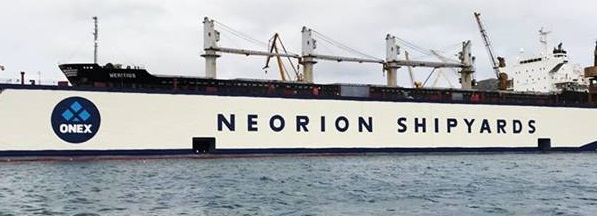 Ήδη όσοι επισκέπτονται την Ερμούπολη μπορούν να δουν συνολικά τη νέα "όψη" του Νεωρίου στο λιμάνι της Σύρου με τη δεξαμενή να φέρει και το σήμα της ONEX.