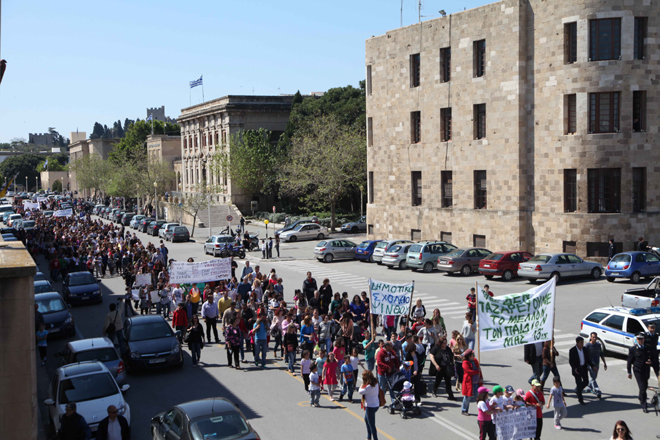 “Στους δρόμους βγήκαν χθες γονείς, μαθητές και δάσκαλοι της περιοχής μας, αντιδρώντας στην απόφαση του υπουργείου Παιδείας να μειώσει τις οργανικές θέσεις και να συγχωνεύσει σχολικές μονάδες. Χθες μπήκε λουκέτο στα περισσότερα σχολεία του νησιού μας και οι σύλλογοι γονέων και κηδεμόνων πραγματοποίησαν συγκέντρωση διαμαρτυρίας έξω από το δημαρχιακό μέγαρο και την Περιφέρεια. Η συγκέντρωση ήταν μεγαλειώδης, με τους διαμαρτυρόμενους να κρατούν πανό και να φωνάζουν συνθήματα για τη μη υποβάθμιση της παιδείας. Στο πλευρό τους ήταν δάσκαλοι και εκπρόσωποι του Εργατικού Κέντρου Ρόδου”. Αυτό είναι ένα χαρακτηριστικό απόσπασμα από τον “Παλμό Ρόδου”, για τις κινητοποιήσεις που έγιναν προχθές. Εμείς συνεχίζουμε να βρισκόμαστε σε νιρβάνα, αλλά όταν “ξυπνήσουμε”, θα είναι πολύ αργά για τα παιδιά μας.