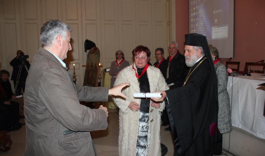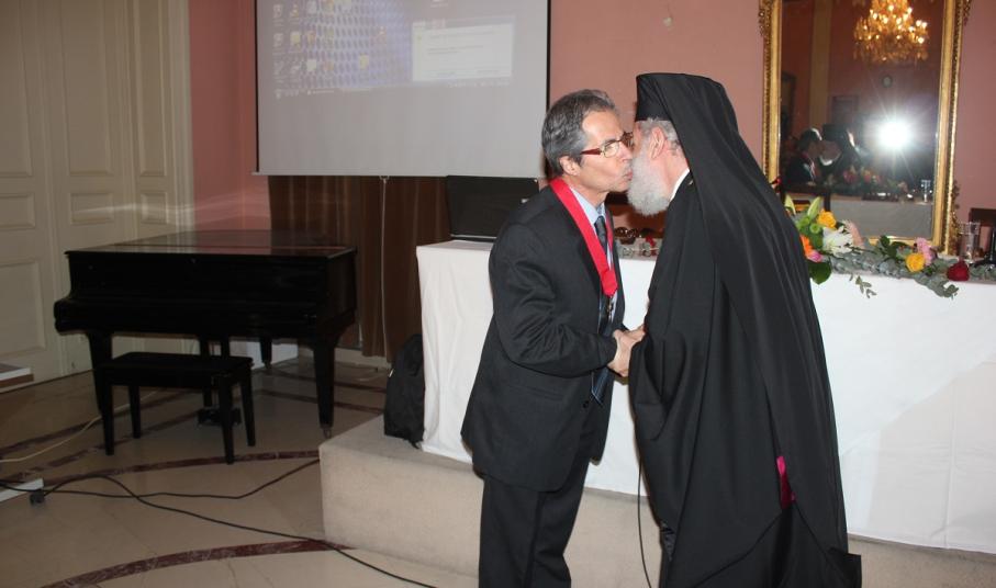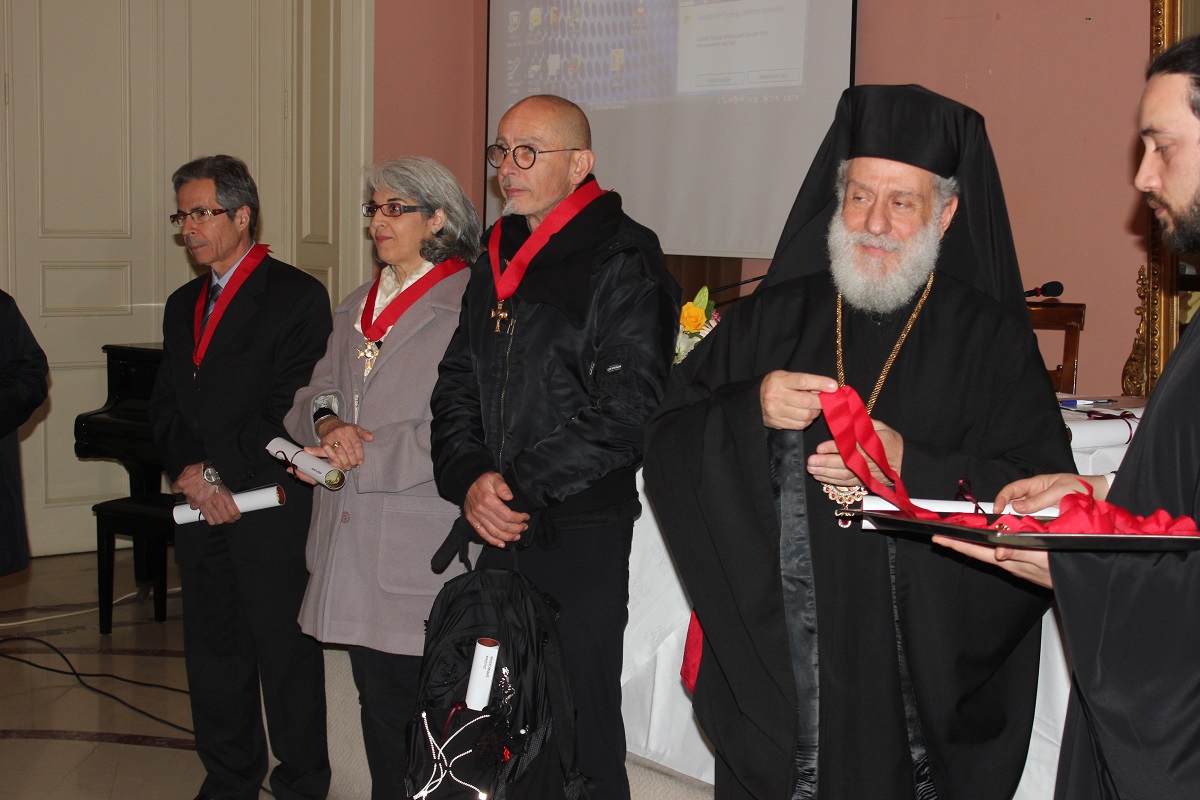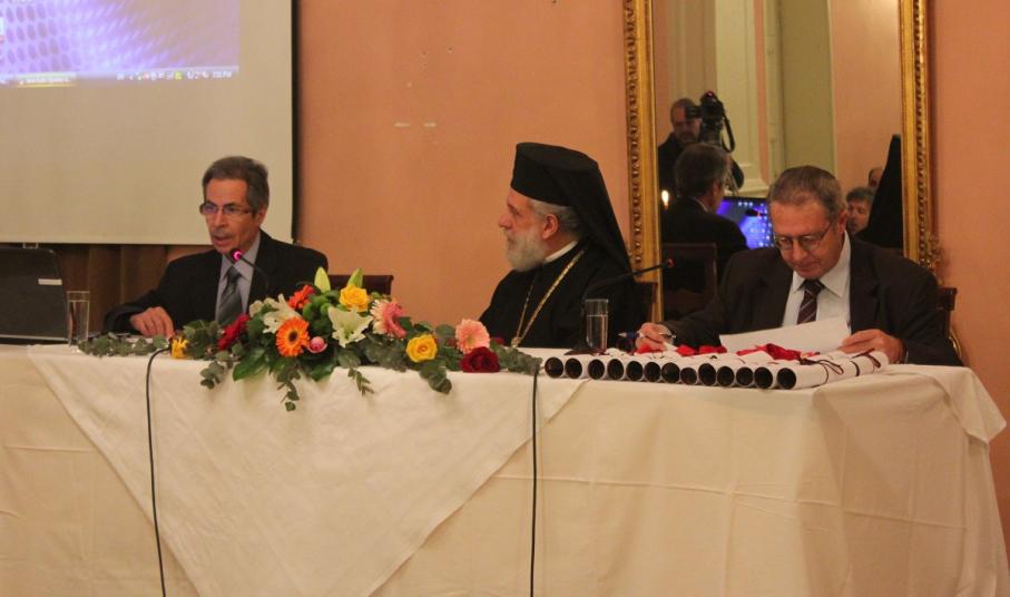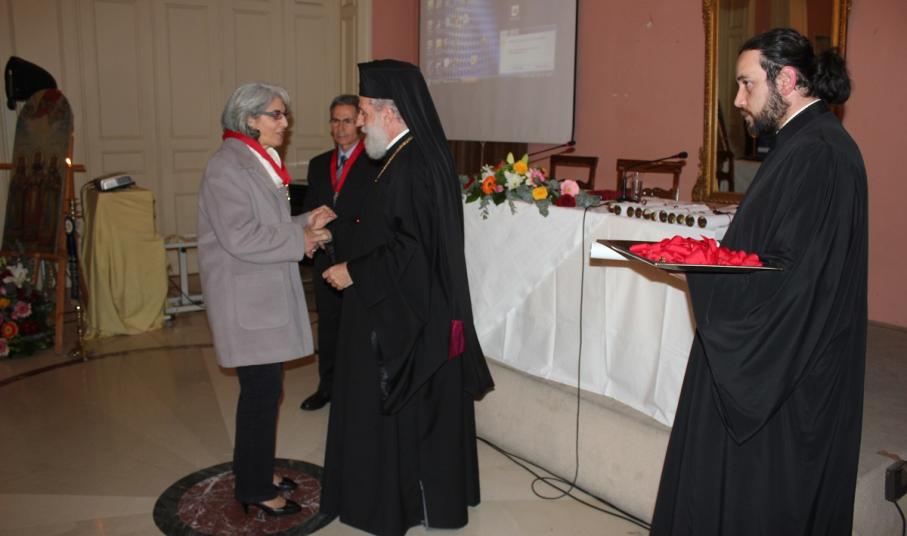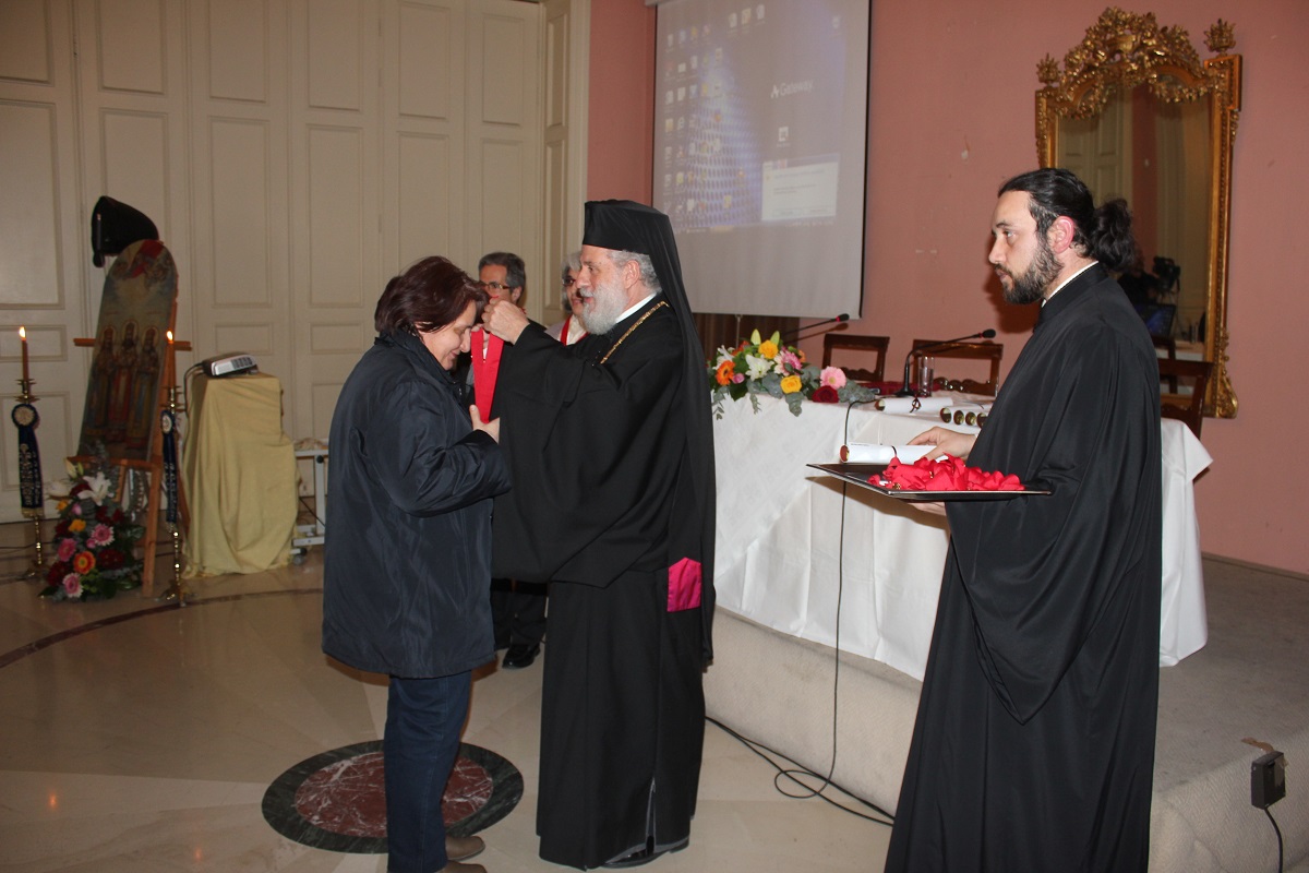 Μετά το τέλος της ομιλίας, ο Σεβασμιώτατος κ. Δωρόθεος Β' απένειμε το Παράσημο της Ιεράς Μητροπόλεως στους συνταξιοδοτηθέντες κατά το παρελθόν έτος 2014 Εκπαιδευτικούς της Σύρου, ως έκφραση ευχαριστιών και αναγνώρισης της προσφοράς τους στην Παιδεία και τους μαθητές, και στον κ. Ιάκωβο Νομικό, για την εύορκη και ευδόκιμο διακονία του στην επιστήμη και τον άνθρωπο.