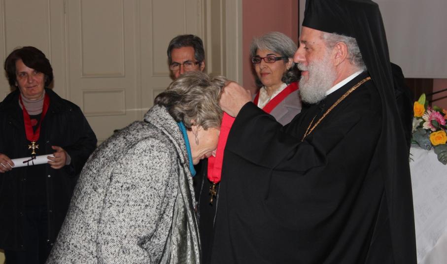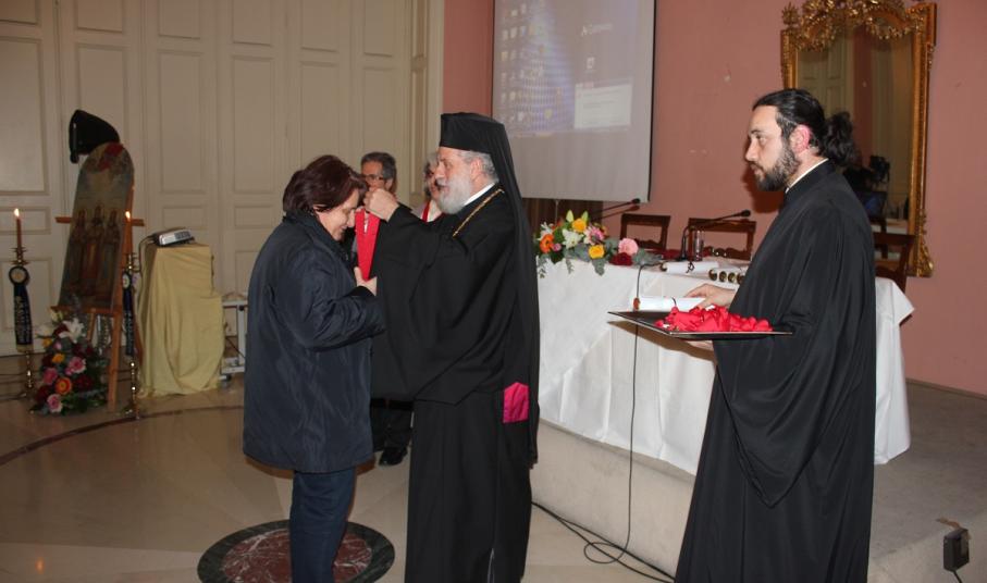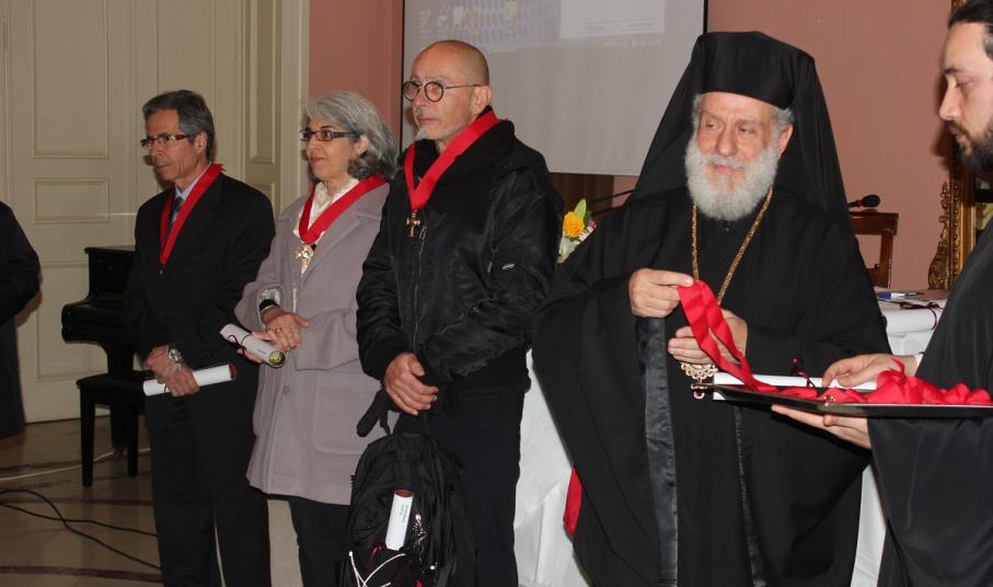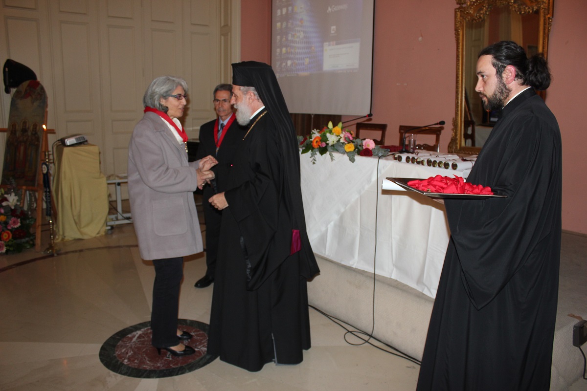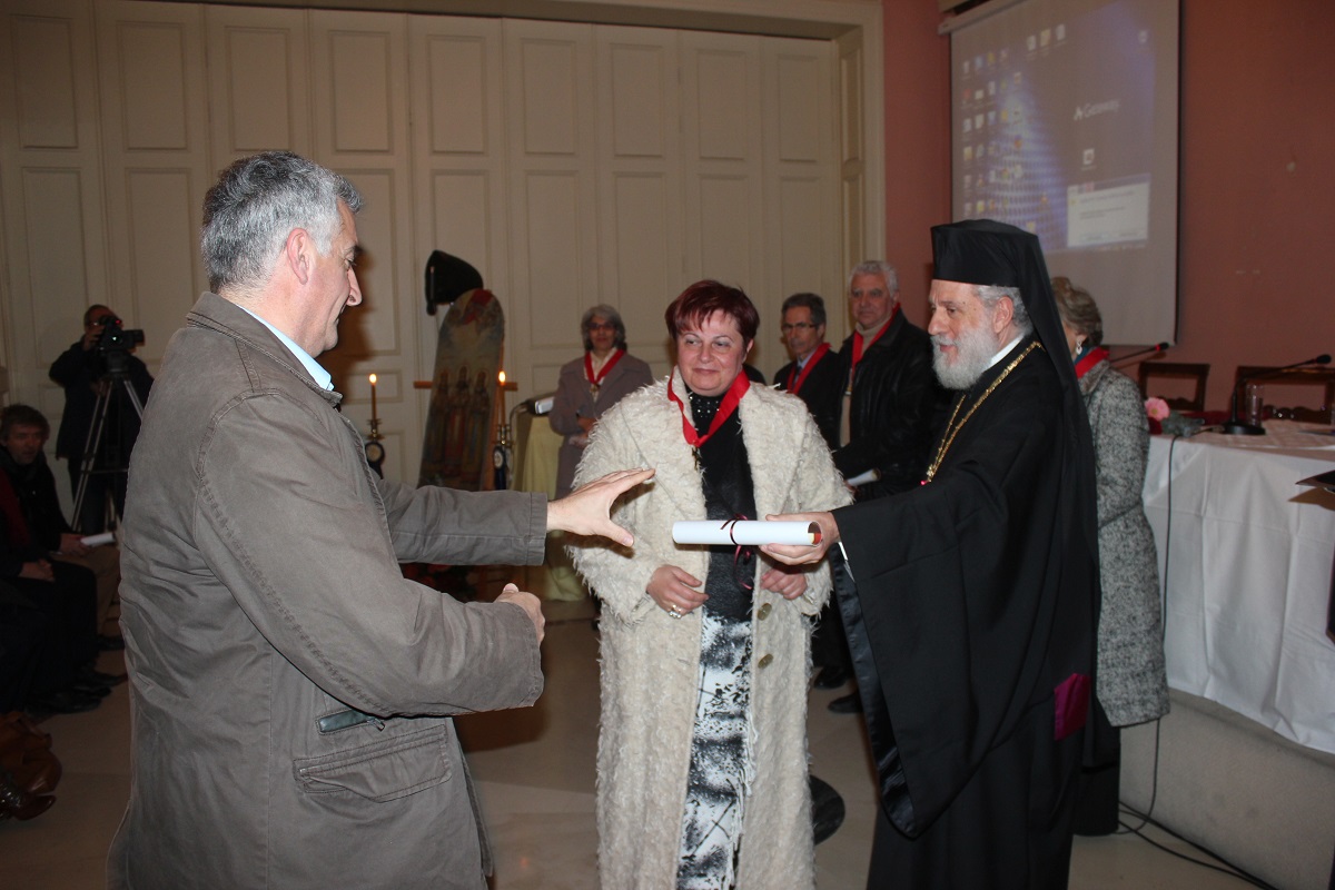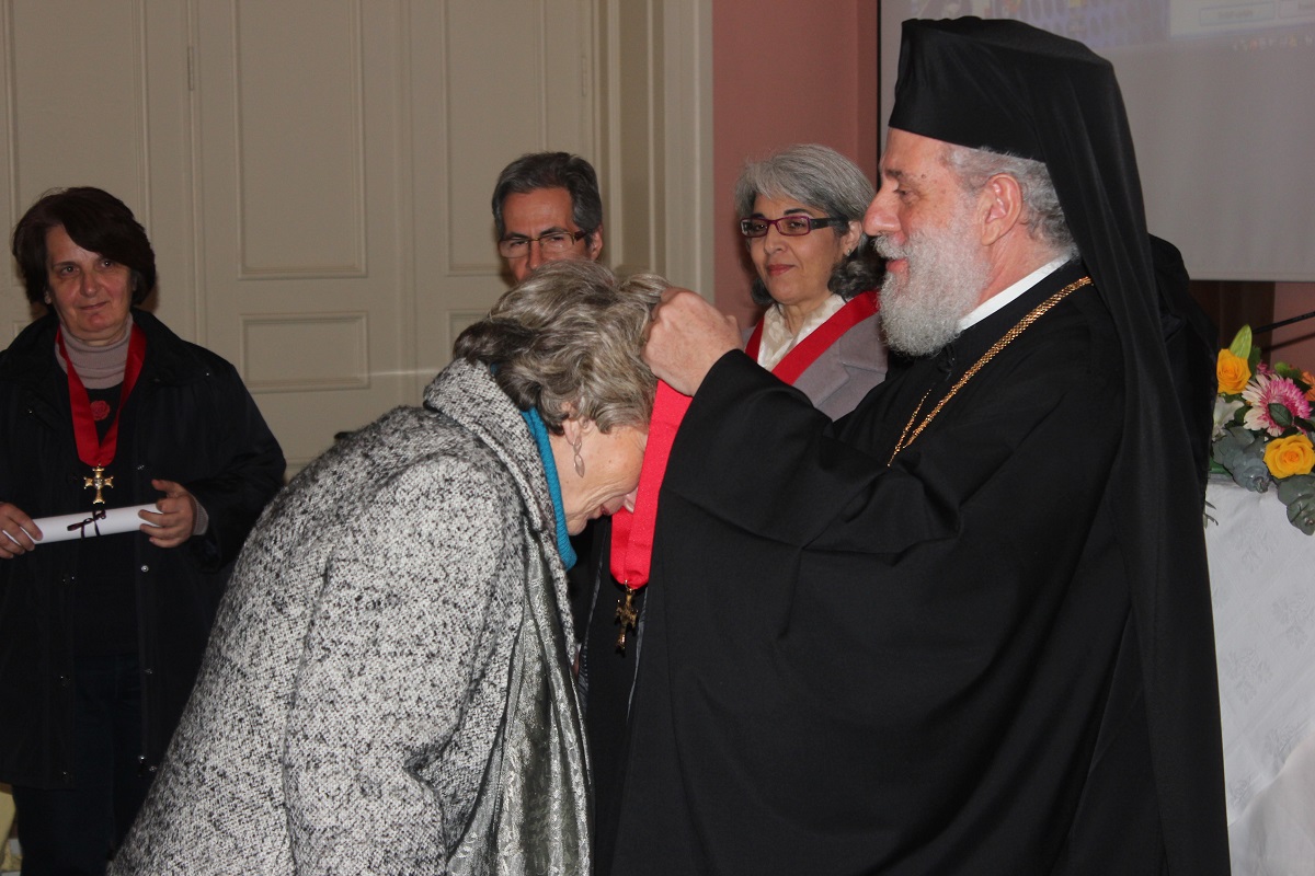Μετά το τέλος της ομιλίας, ο Σεβασμιώτατος κ. Δωρόθεος Β' απένειμε το Παράσημο της Ιεράς Μητροπόλεως στους συνταξιοδοτηθέντες κατά το παρελθόν έτος 2014 Εκπαιδευτικούς της Σύρου, ως έκφραση ευχαριστιών και αναγνώρισης της προσφοράς τους στην Παιδεία και τους μαθητές, και στον κ. Ιάκωβο Νομικό, για την εύορκη και ευδόκιμο διακονία του στην επιστήμη και τον άνθρωπο.