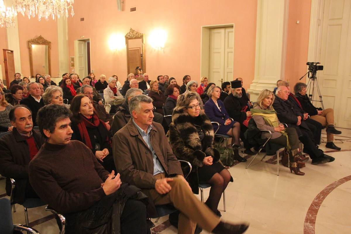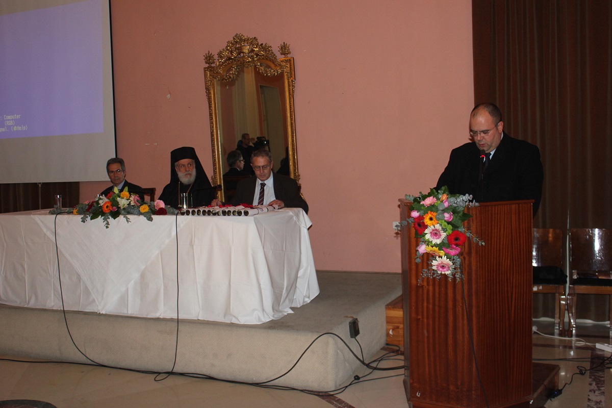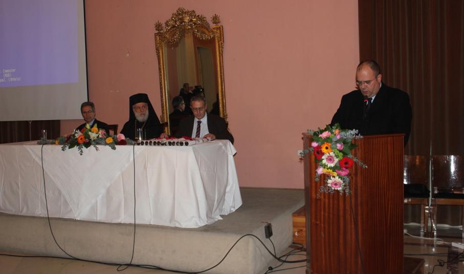 Χαιρετισμό απηύθυναν επίσης, ο Εκπρόσωπος του Καθολικού Επισκόπου Σύρου π. Αντώνιος Βουτσίνος, ο Αντιδήμαρχος Σύρου – Ερμούπολης Αλέξης Αθανασίου και οι Διευθυντές Πρωτοβάθμιας και Δευτεροβάθμιας Εκπαίδευσης, κ.κ. Καφτηράνης και Μιχαλόπουλος. Αμέσως μετά, ο Σεβασμιώτατος Μητροπολίτης Σύρου κ. Δωρόθεος Β' εισηγήθηκε την έναρξη της εκδηλώσης, αναφερθείς στο συμβολισμό της εορτής των Τριών Ιεραρχών, ως στοιχείου εθνικής αυτοσυνειδησίας και συλλογικής ταυτότητας, και τόνισε ότι η σημερινή Ευρώπη, που απέτυχε στην οικονομική σύγκλιση, καλείται πλέον να πετύχει την πνευματική σύγκλιση, ανατρέχουσα στις διδαχές. τη δράση και τις προτάσεις των Τριών Ιεραρχών.