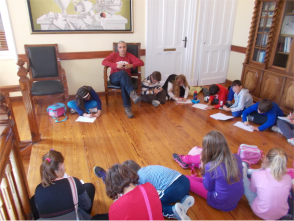 Επόμενος σταθμός ήταν η έπαυλη Τσιροπινά, λίγα μέτρα μακριά από το σχολείο. Η έπαυλη από κατοικία έχει αλλάξει τρόπο χρήσης και στις μέρες μας φιλοξενεί υπηρεσίες του Δήμου αλλά και εκδηλώσεις. Οι μαθητές κι οι μαθήτριες της Δ2 τάξης είχαν προετοιμάσει τις ερωτήσεις τους για τη συνέντευξη. Στον χώρο υποδοχής της έπαυλης, ο υπάλληλος κ. Πέτρος Ρούσσος απάντησε στις ερωτήσεις των παιδιών, τα οποία κατέγραφαν στα τετράδια τους τις απαντήσεις, σαν καλοί δημοσιογράφοι. Στην τάξη τους χρησιμοποίησαν αυτές τις σημειώσεις για να αναπτύξουν τα δικά τους κείμενα.