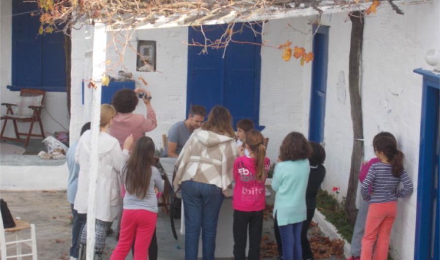 Τον επόμενο μήνα, οι μαθητές της Δ1 τάξης επισκέφτηκαν ένα παραδοσιακό χωριατόσπιτο της Ποσειδωνίας, εκείνο που ως το “σπίτι του Μεθενίτη”. Το σπίτι βρίσκεται κοντά στο σχολείο και είναι μία από τις παλαιότερες οικίες της περιοχής. Οι οικοδεσπότες υποδέχτηκαν την ομάδα στην αυλή του σπιτιού, όπου πραγματοποιήθηκε η συνέντευξη. Στη συνέχεια, προχώρησαν στο εσωτερικό, όπου είδαν την οροφή με τα καλάμια, τους χοντρούς τοίχους με μεγάλες εσοχές σε κάποια σημεία, το τζάκι-κουζίνα, ένα παλιό τηλέφωνο, την πόρτα που ανοίγει μισή. Τα παιδιά συνόδευσαν οι Μαργαρίτα Φόνσου και η Μαρία Ιωσηφίδου.