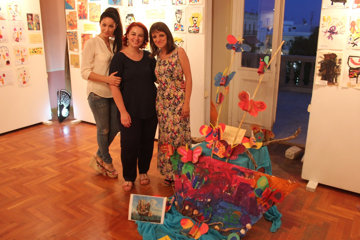 Η έκθεση με την επιμέλεια των νηπιαγωγών Ανθής Γκούρλη, Σοφίας Σκουργιά και Ελισάβετ Χαλκίδου παρουσιάστηκε την περασμένη εβδομάδα στην Αίθουσα Εμμανουήλ Ροΐδη στο Πνευματικό Κέντρο Ερμούπολης. Τη δεύτερη ημέρα, οι μικροί επισκέπτες συμμετείχαν σε ένα θεατρικό παιχνίδι, όπου πειραματίστηκαν με τα χρώματα, δραματοποίησαν πίνακες ζωγραφικές και άφησαν τα δικά τους αποτυπώματα.