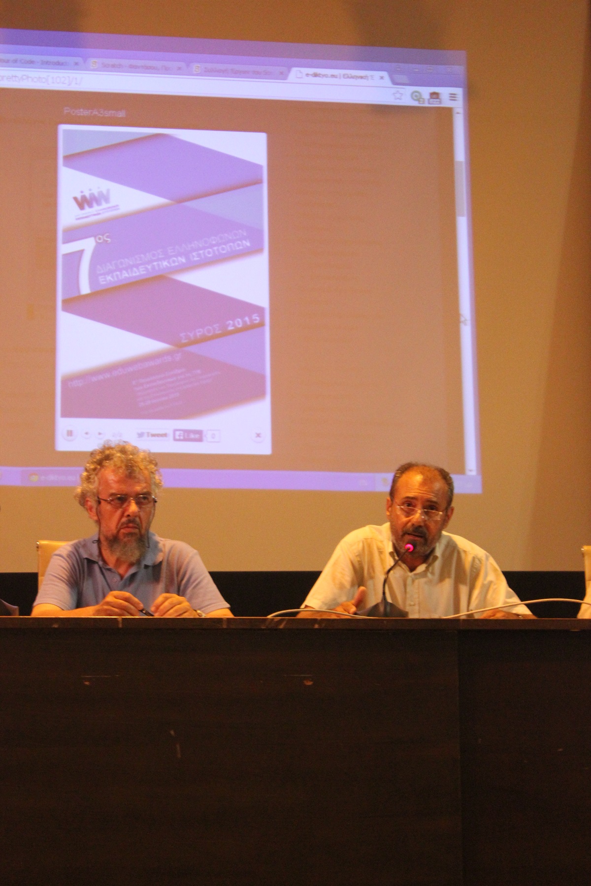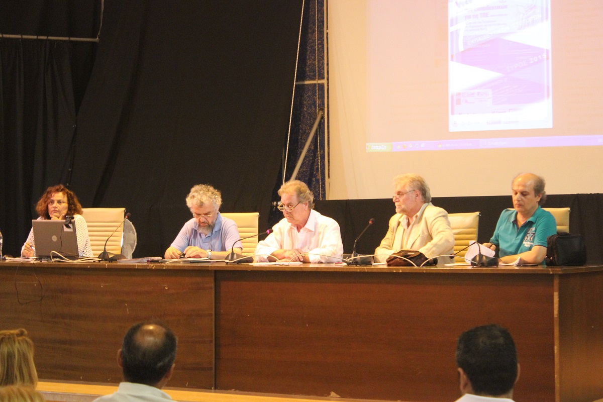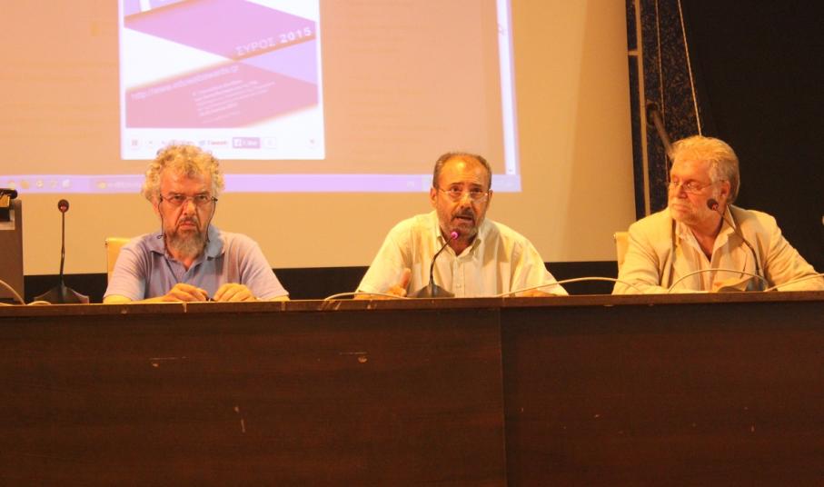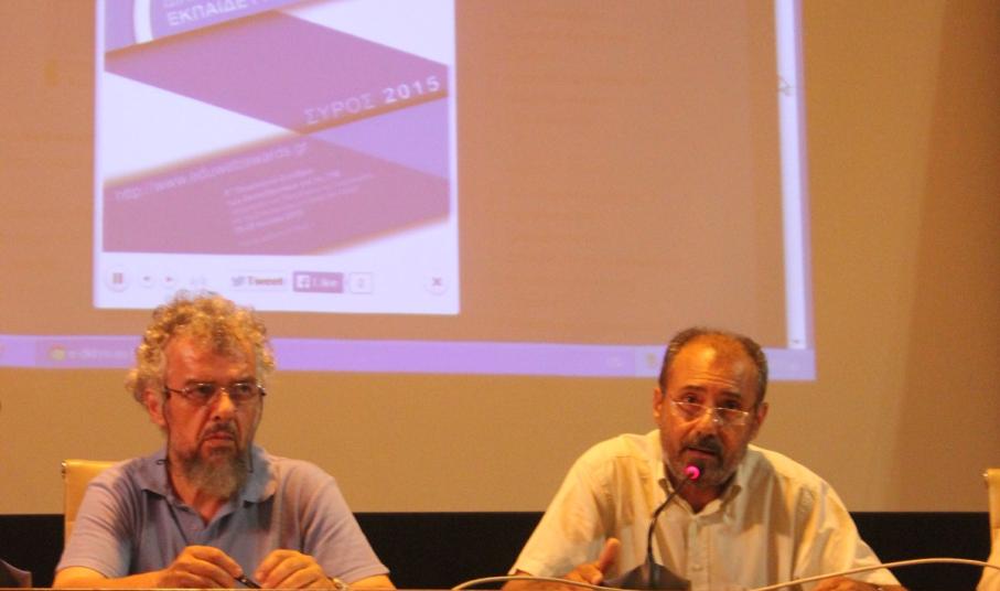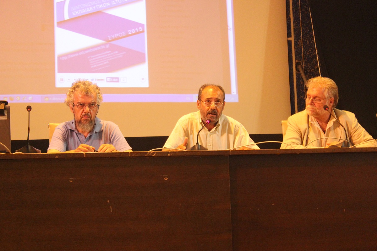 Χαιρετισμό απηύθυναν επίσης ο Διευθυντής Δευτεροβάθμιας Εκπαίδευσης Κυκλάδων Χρήστος Μιχαλόπουλος, ο κ. Βακόνδιος ο οποίος προέτρεψε μάλιστα τους συμμετέχοντες να "περπατήσουν την πεζοδρομημένη Ερμούπολη" και φυσικά η ψυχή του “Συνεδρίου” ο κ. Νίκος Τζιμόπουλος.