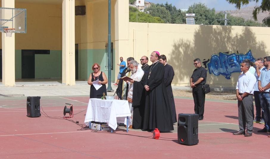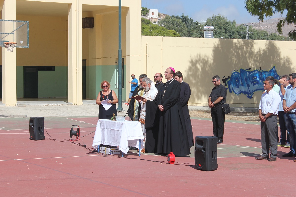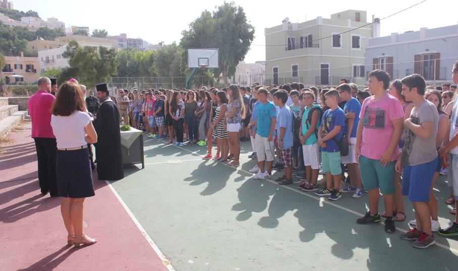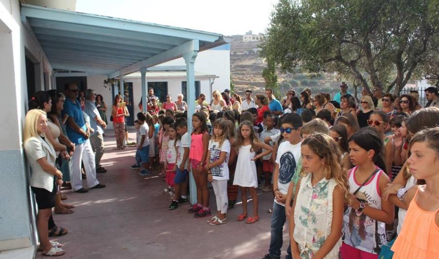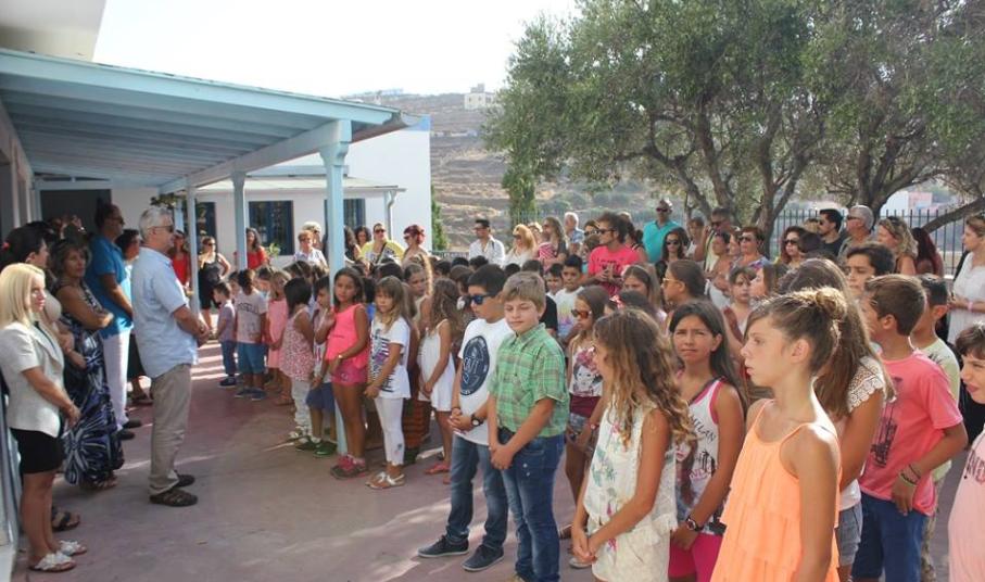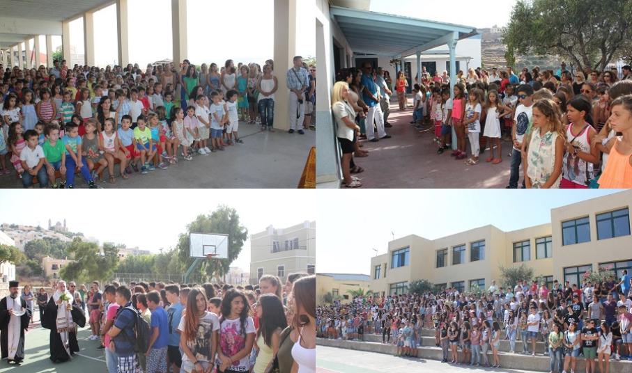 Λίγο νωρίτερα από τις 9, οι μαθητές με τους γονείς τους αφίχθησαν στα νηπιαγωγεία και τα δημοτικά σχολεία του νησιού προκειμένου να συμμετάσχουν στην έναρξη του νέου σχολικού έτους, κατά τη διάρκεια της οποίας, ιερείς της Ορθόδοξης και της Καθολικής Εκκλησίας μετέδωσαν εγκάρδιες ευχές προς τη μαθητική κι εκπαιδευτική κοινότητα.