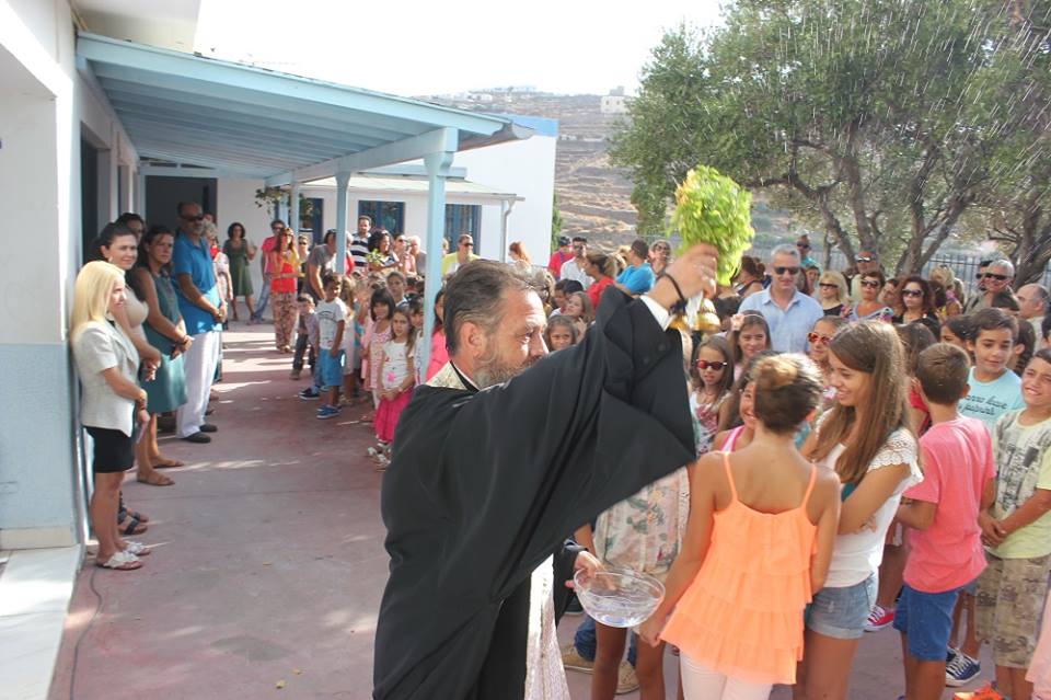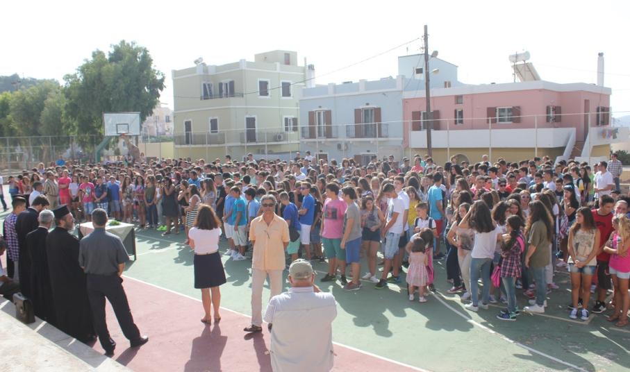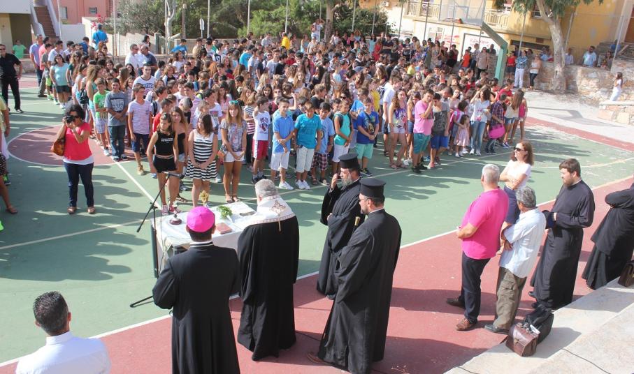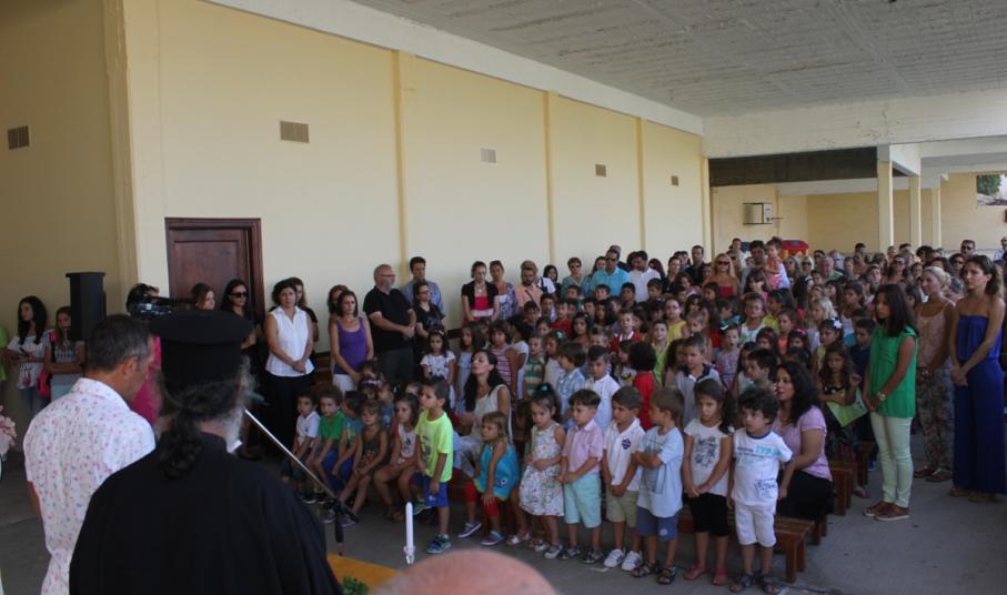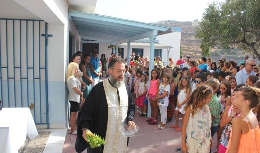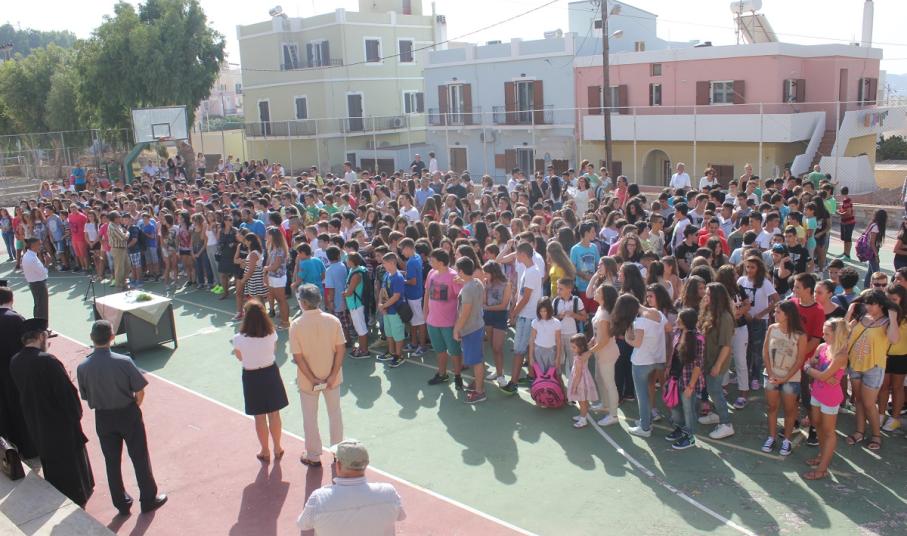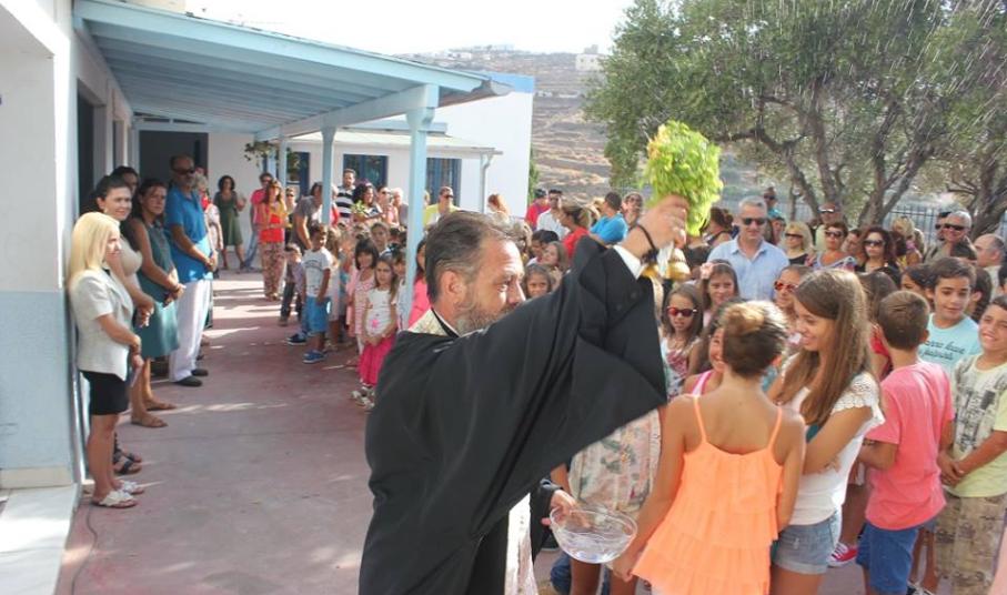 Λίγο νωρίτερα από τις 9, οι μαθητές με τους γονείς τους αφίχθησαν στα νηπιαγωγεία και τα δημοτικά σχολεία του νησιού προκειμένου να συμμετάσχουν στην έναρξη του νέου σχολικού έτους, κατά τη διάρκεια της οποίας, ιερείς της Ορθόδοξης και της Καθολικής Εκκλησίας μετέδωσαν εγκάρδιες ευχές προς τη μαθητική κι εκπαιδευτική κοινότητα.