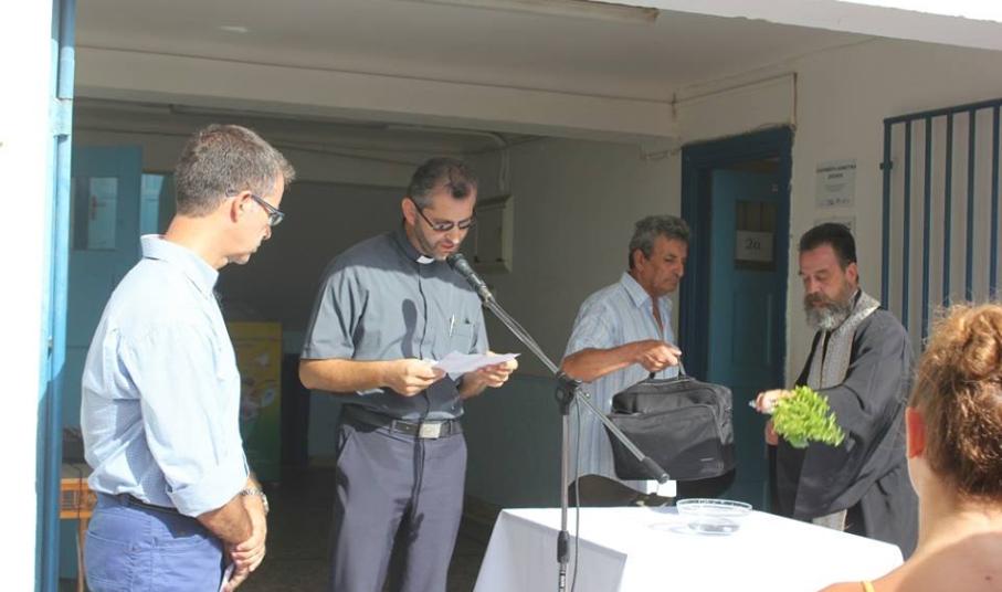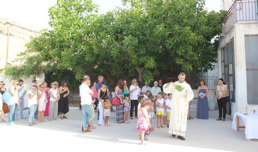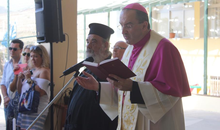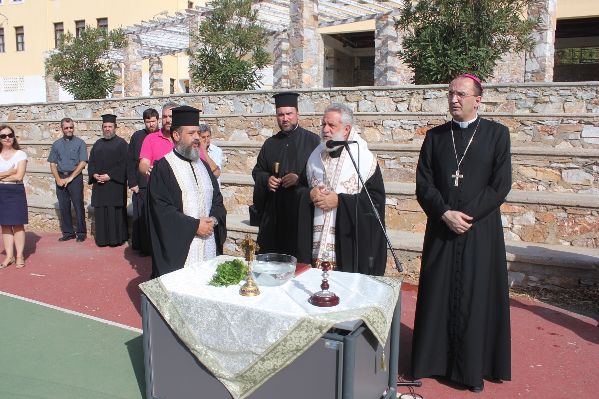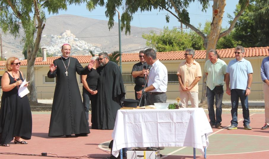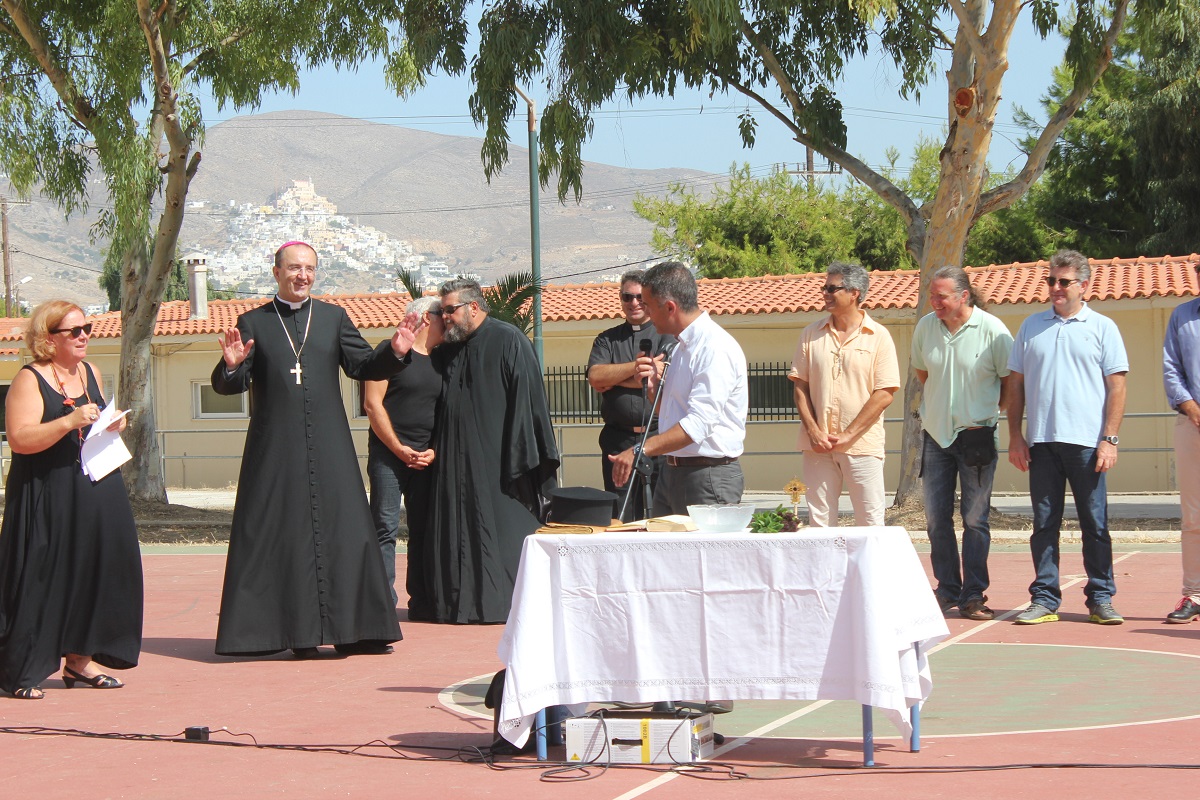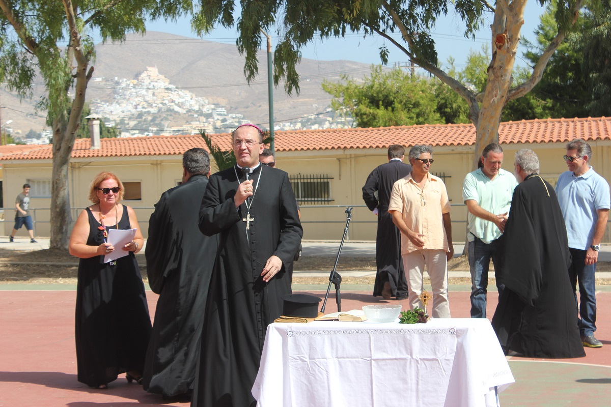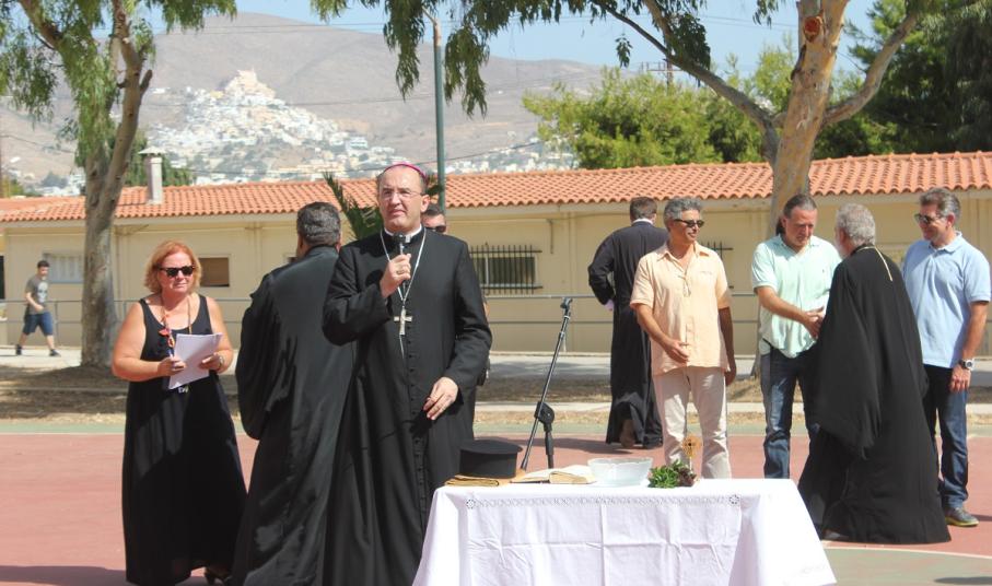 Ευχές για μία καλή και δημιουργική χρονιά έδωσε στους μαθητές του Ιδιωτικού Δημοτικού Σχολείου Άγιος Γεώργιος, ο Καθολικός Επίσκοπος Σύρου Σεβ. π. Πέτρος Στεφάνου. Στον χαιρετισμό του, ο Γενικός Διευθυντής του Σχολείου Φρερ Μάριος παρουσίασε και τις νέες προσθήκες στο εκπαιδευτικό προσωπικό, τον Φρερ Νίκο Πρίντεζη, ο οποίος αντικαθιστά τον Φρερ Φραγκίσκο μετά τη μετάθεσή του στη Θεσσαλονίκη, την Αγνή Ρούσσου, καθηγήτρια καλλιτεχνικών, τη Μαρίνα Ξαγοράρη Ρηγούτσου, καθηγήτρια αγγλικών, τη Νίκη Κωνσταντάκη και την Ελεάννα Αποστόλου.