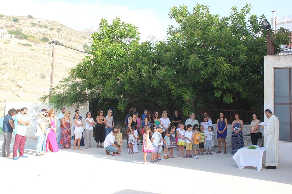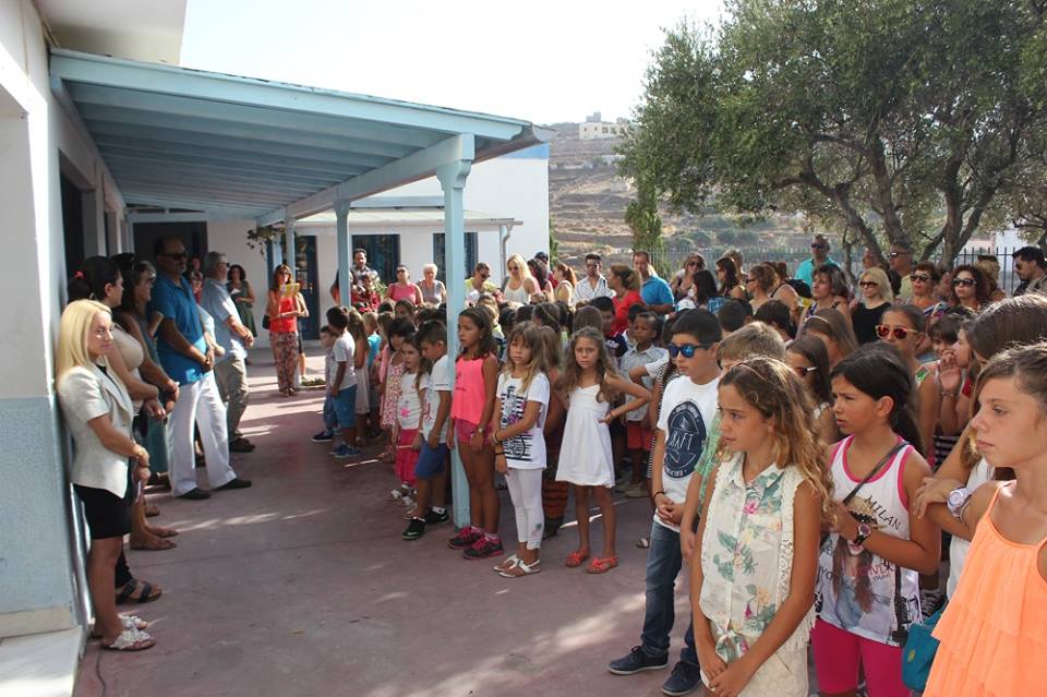 Λίγο νωρίτερα από τις 9, οι μαθητές με τους γονείς τους αφίχθησαν στα νηπιαγωγεία και τα δημοτικά σχολεία του νησιού προκειμένου να συμμετάσχουν στην έναρξη του νέου σχολικού έτους, κατά τη διάρκεια της οποίας, ιερείς της Ορθόδοξης και της Καθολικής Εκκλησίας μετέδωσαν εγκάρδιες ευχές προς τη μαθητική κι εκπαιδευτική κοινότητα.
