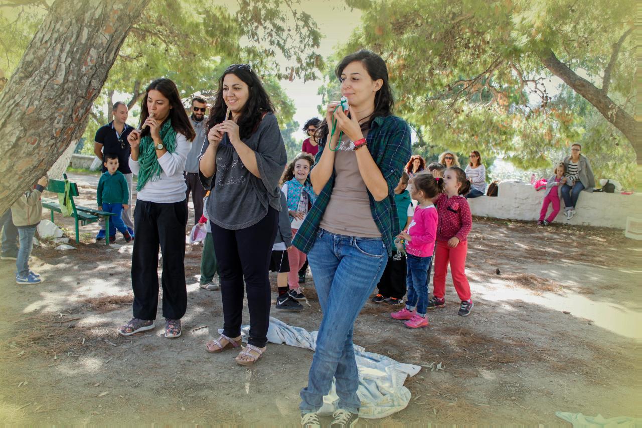 Οι δραστηριότητες της πρώτης ημέρας για παιδιά ηλικίας 4 έως 8 ετών διοργανώθηκαν και συντονίστηκαν από τις παιδαγωγούς του παιδικού σταθμού «Η Φωλιά», Χριστίνα Λορέντζου, Πόπη Μπατζάκη και Αγγέλα Βαρθαλίτου. Την εκδήλωση απαθανάτισε μοναδικά με τη φωτογραφική μηχανή της, η Έλεν Καλογερά.